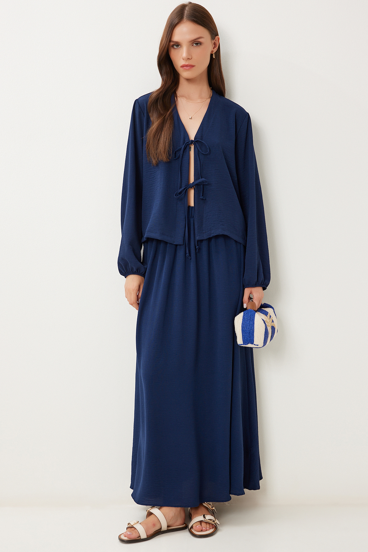 Bağlama Detaylı Ayrobin Bluz Etek Takım Bağlama Detaylı Ayrobin Bluz Etek Takım LDD0109 42