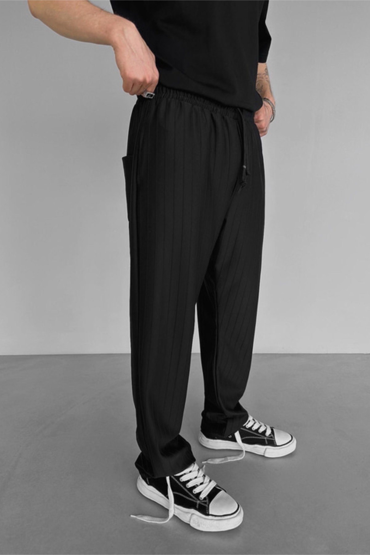Jogger Pantolon Slim Fit Krep Çizgili Bel Lastikli Jogger Pantolon Slim Fit Krep Çizgili Bel Lastikli loisjgpnt88 2XL
