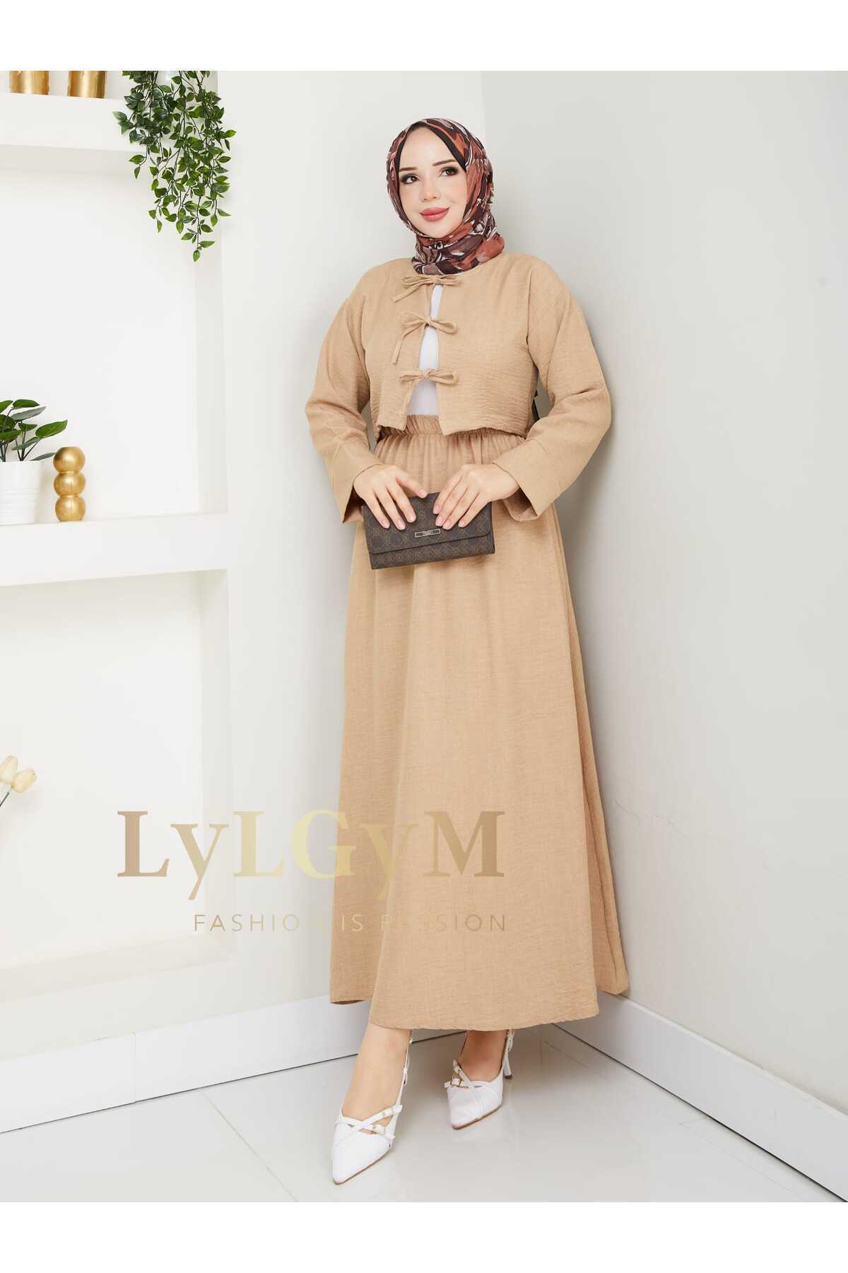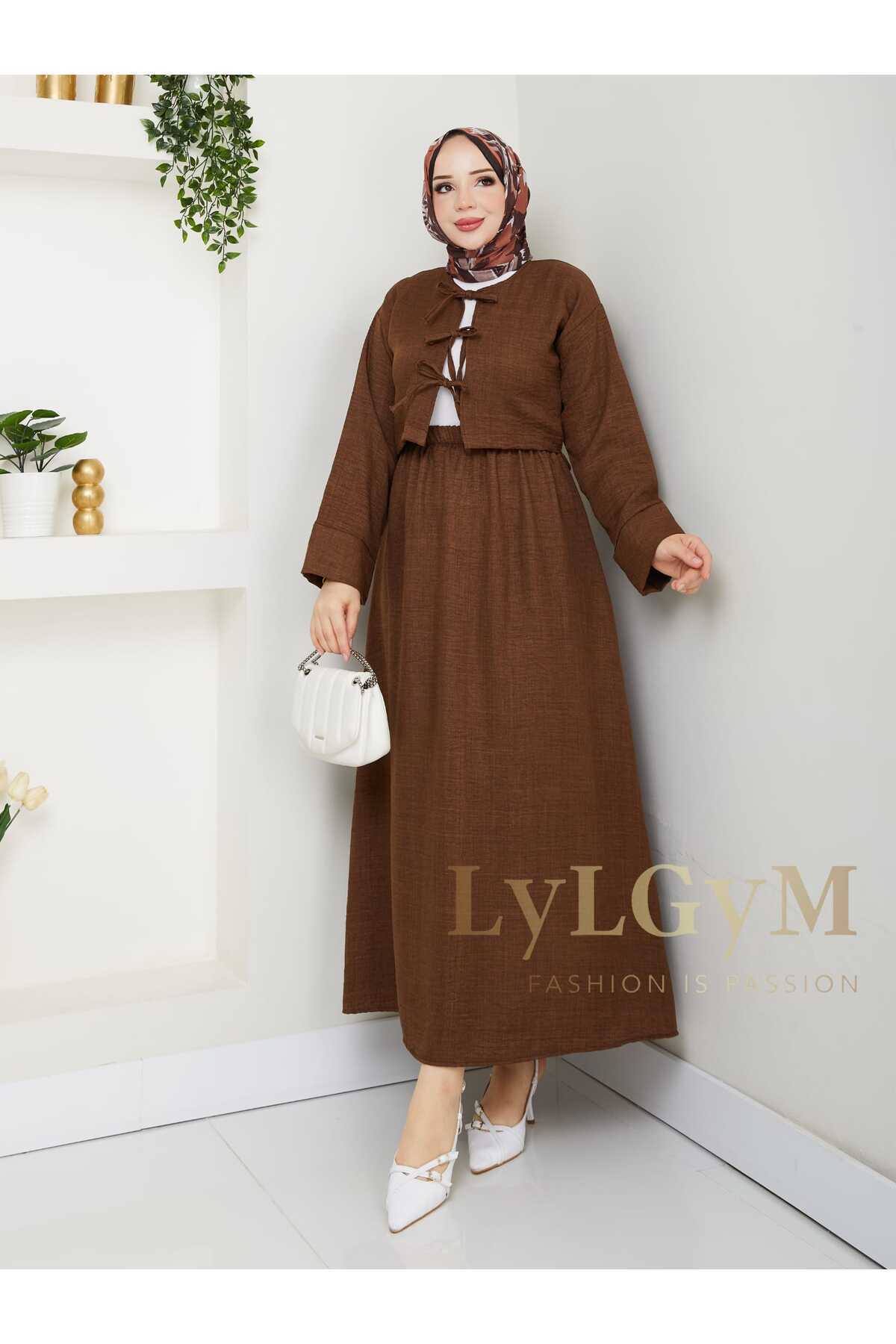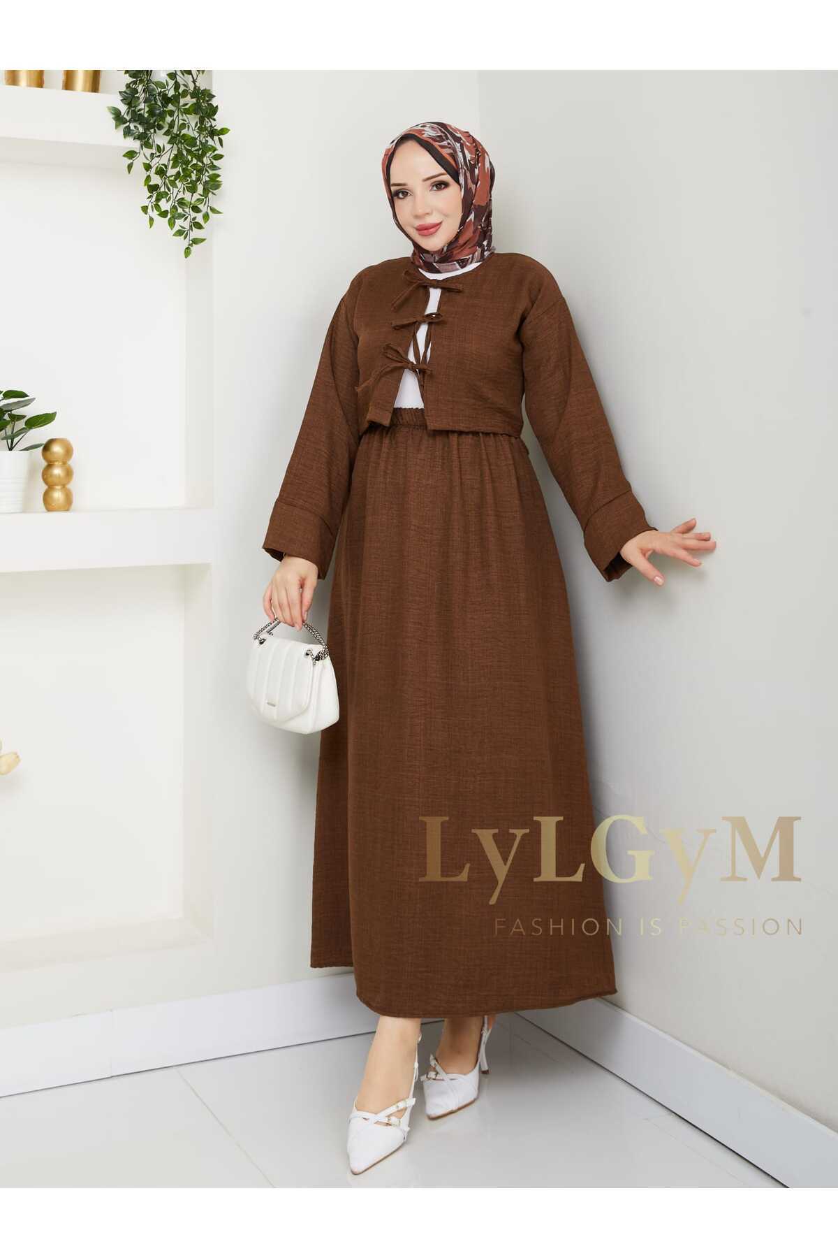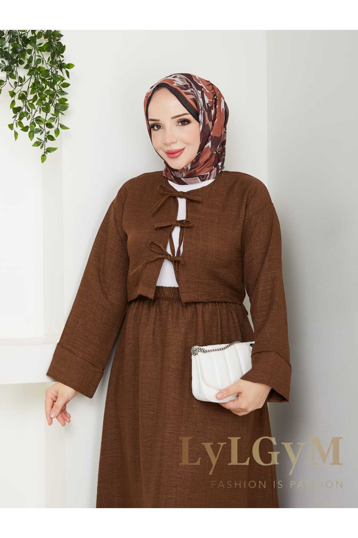 Kadın Tesettür Keten Ayrobin Kumaş ikili Etekli Crop Kimono Takım Kadın Tesettür Keten Ayrobin Kumaş ikili Etekli Crop Kimono Takım lylgymkmn58920 L/XL