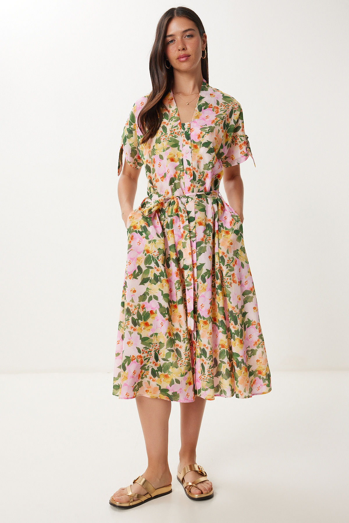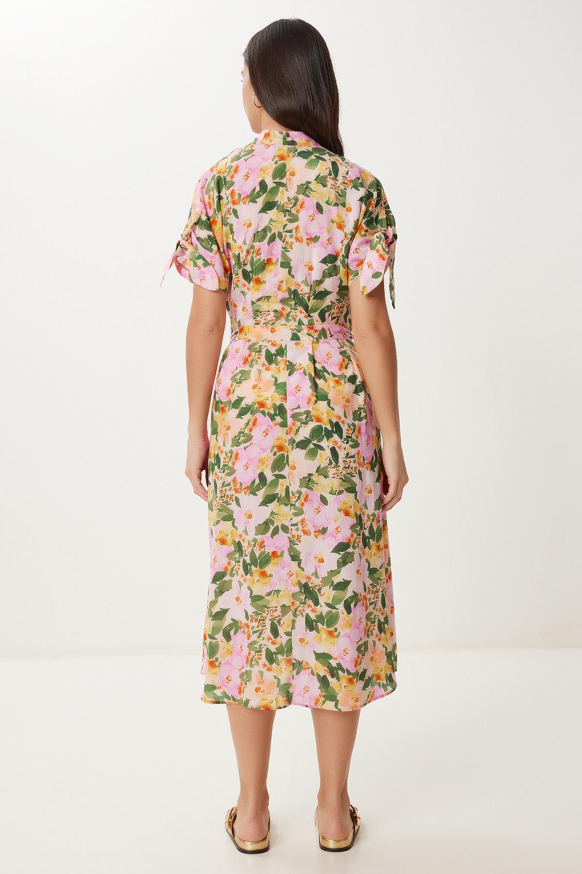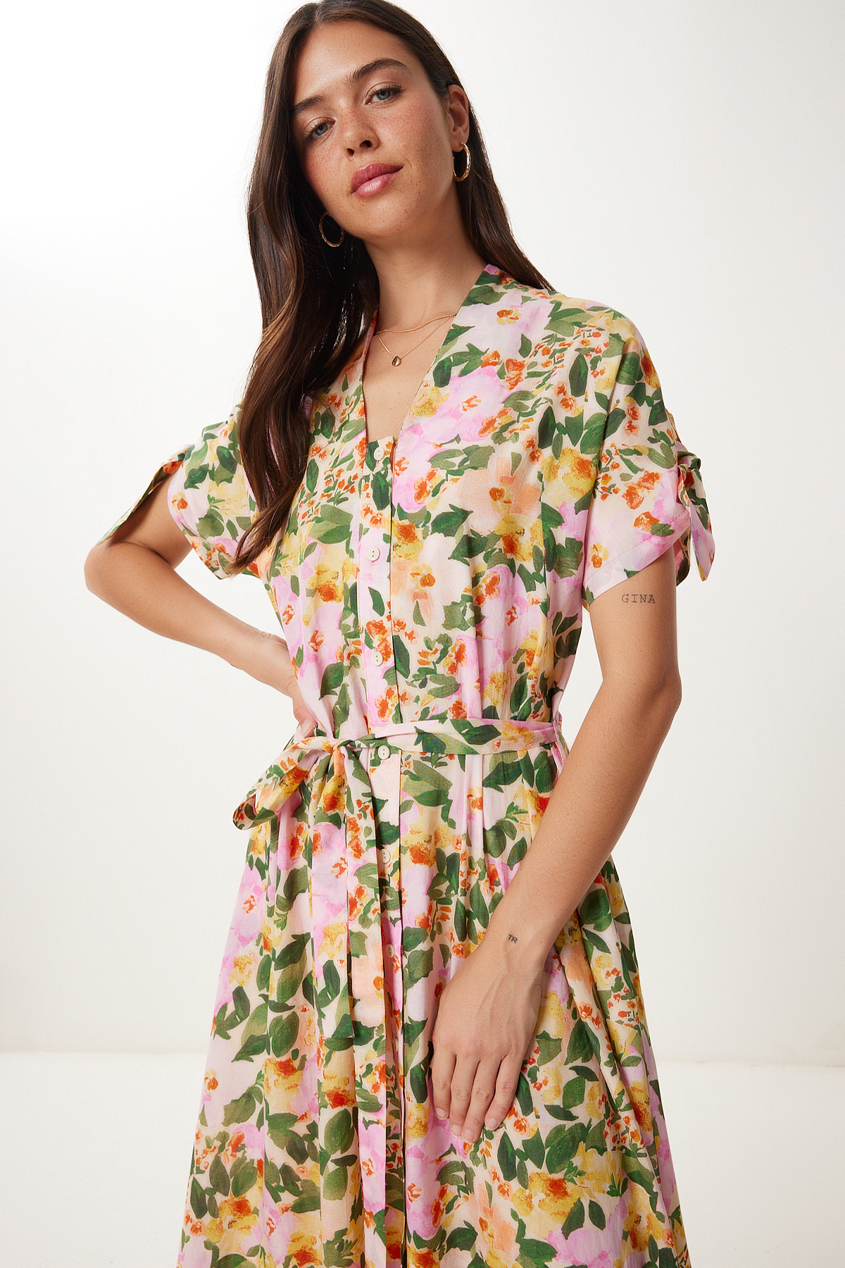 Desenli Kuşaklı Dokuma Gömlek Elbise Desenli Kuşaklı Dokuma Gömlek Elbise LWF0039 40
