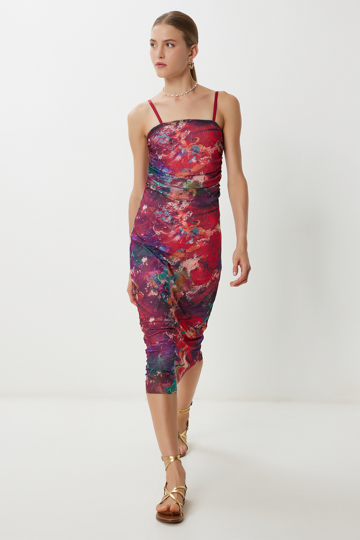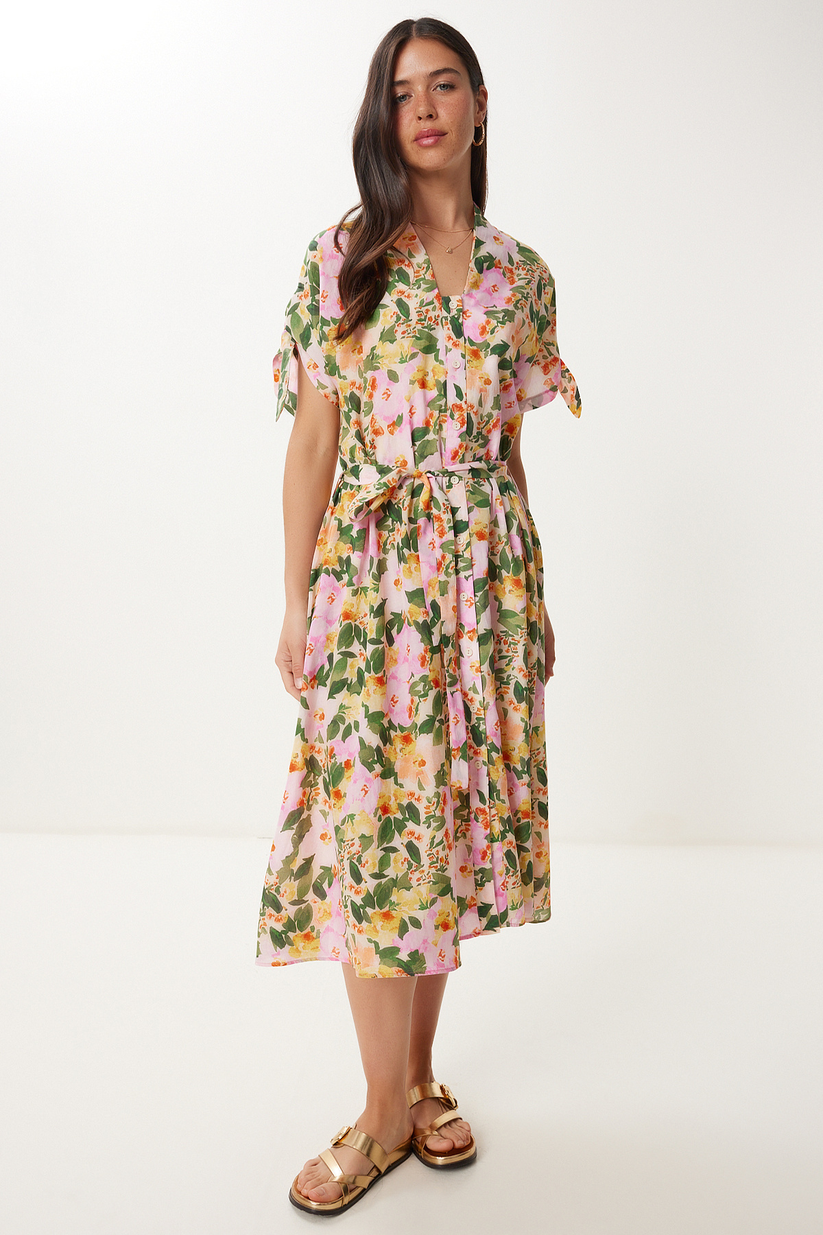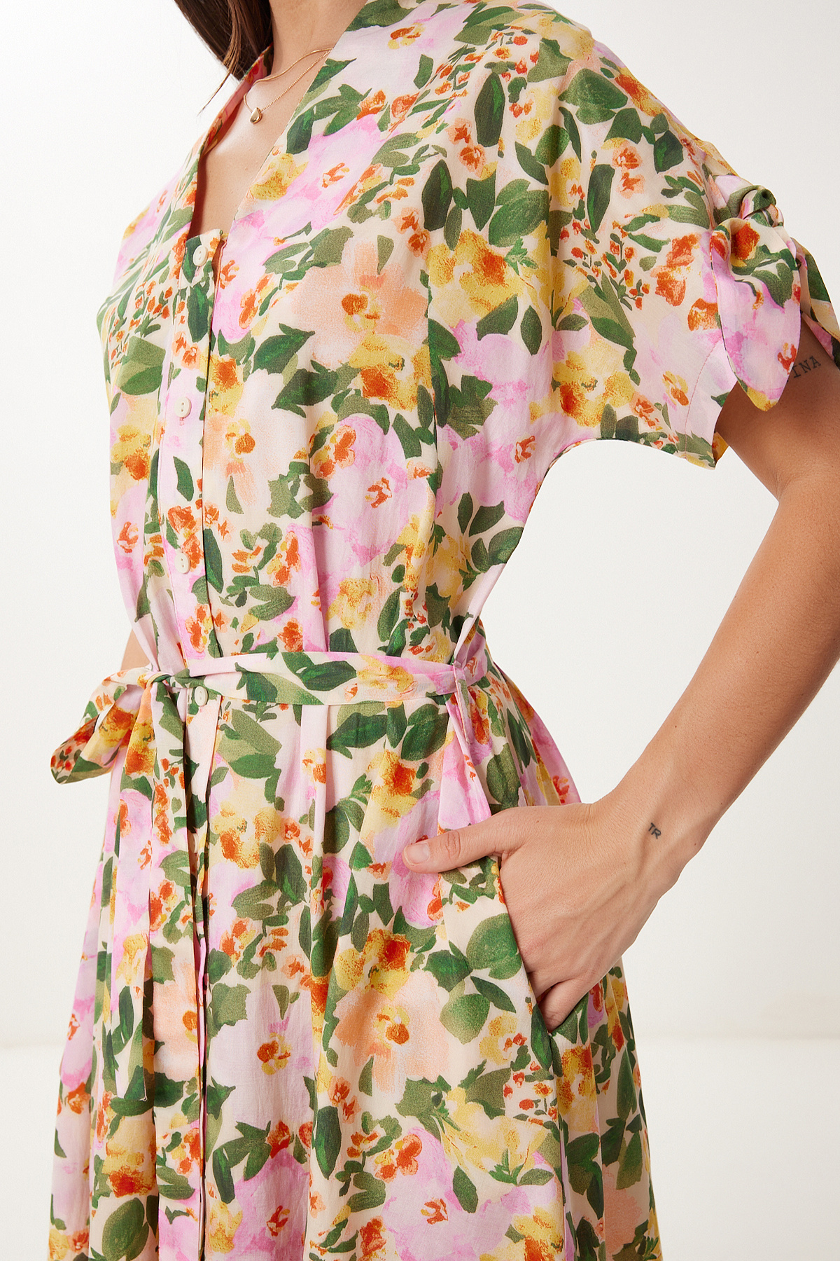 Desenli Kuşaklı Dokuma Gömlek Elbise Desenli Kuşaklı Dokuma Gömlek Elbise LWF0039 40