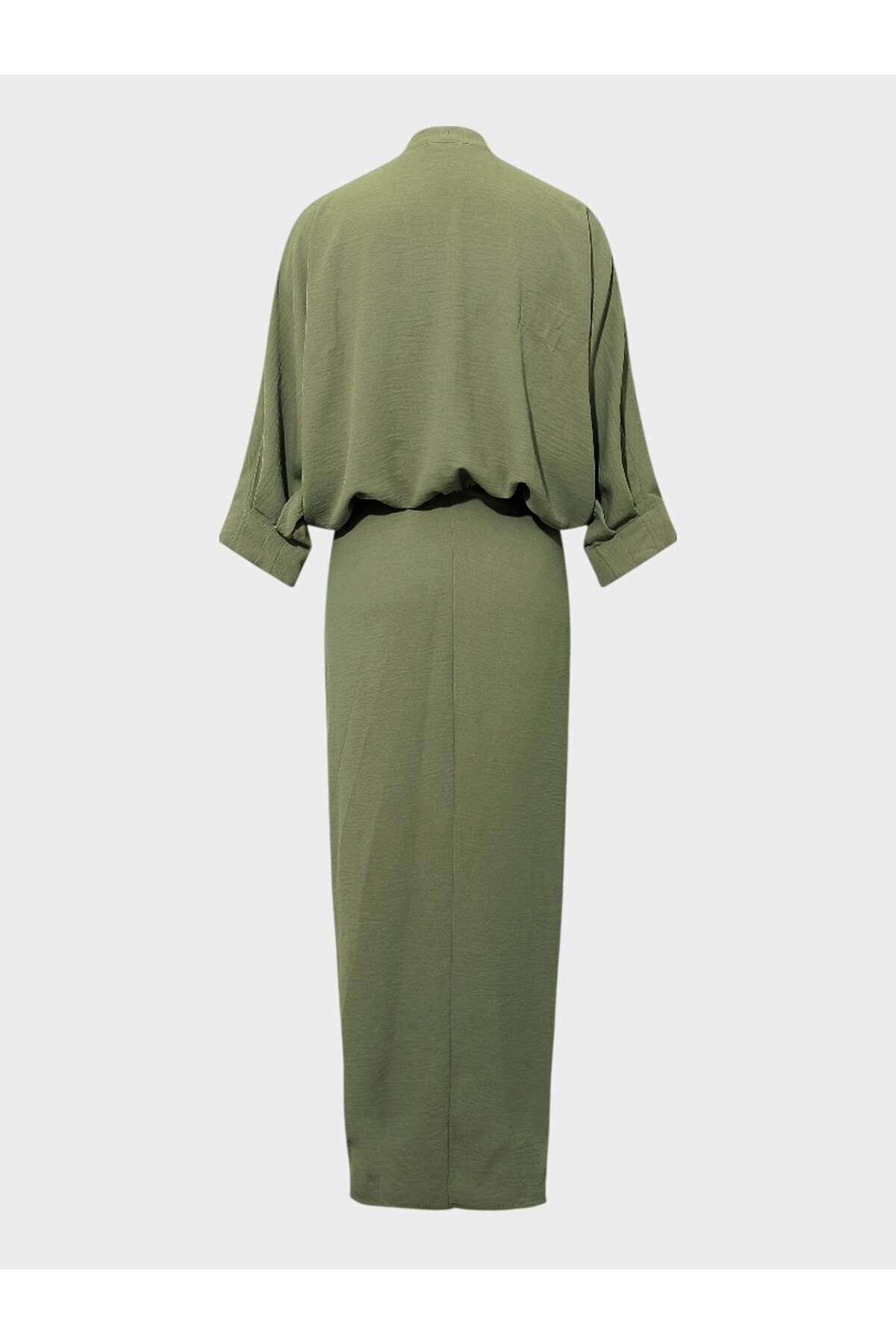 Eteği Süs Düğmeli ve Büzgülü Yırtmaçlı Elbise - Haki Eteği Süs Düğmeli ve Büzgülü Yırtmaçlı Elbise - Haki 24SL111004 L