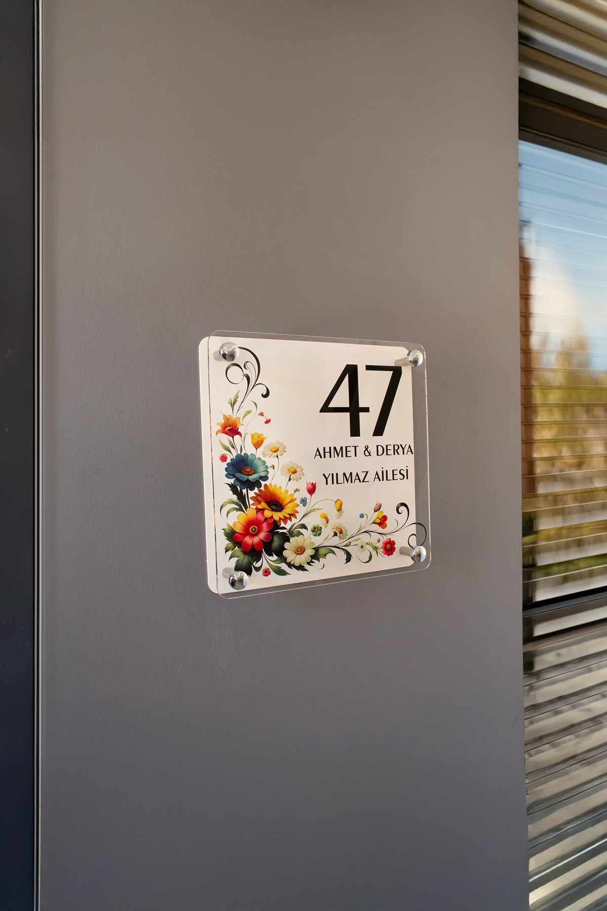 Kişiye Özel Çiçek Motifli Kapı Numarası ve Aile İsmi Tabelası Kişiye Özel Çiçek Motifli Kapı Numarası ve Aile İsmi Tabelası MM-TAB-UV-8 20 x 20