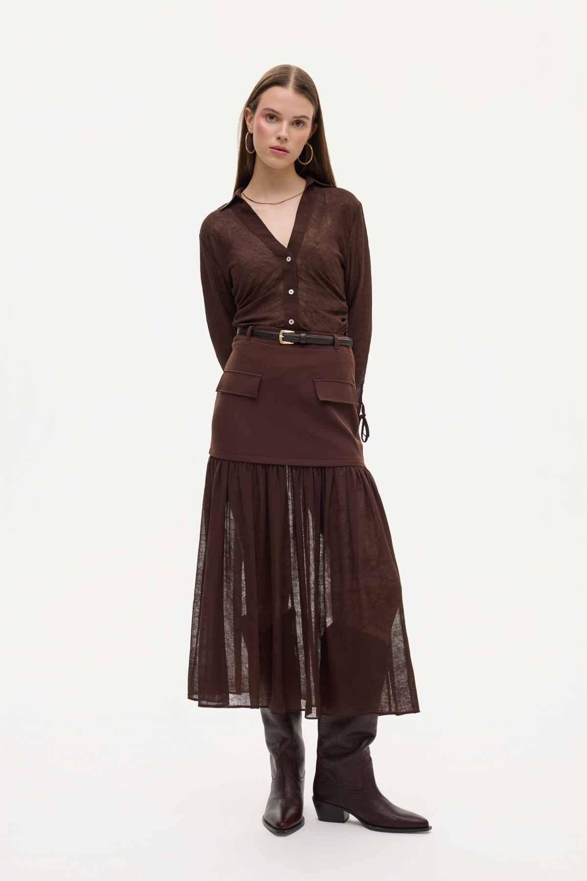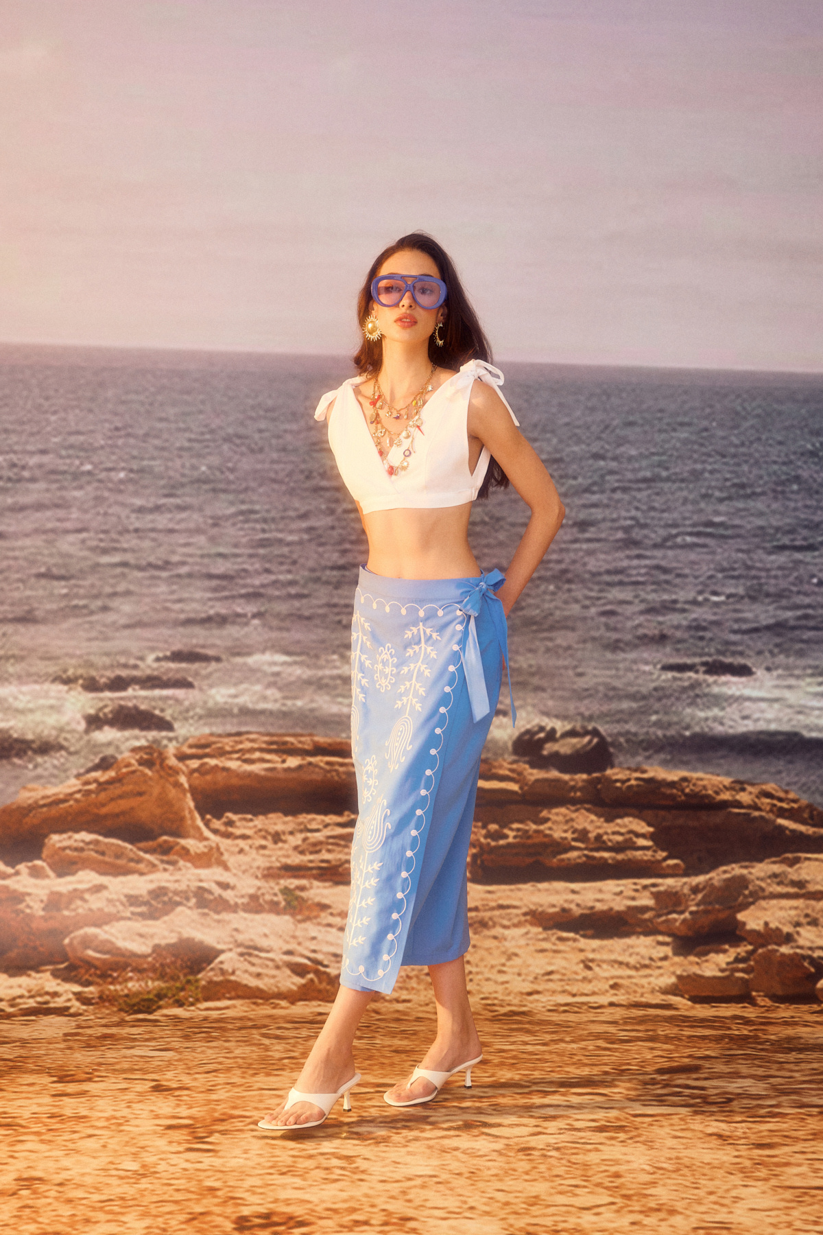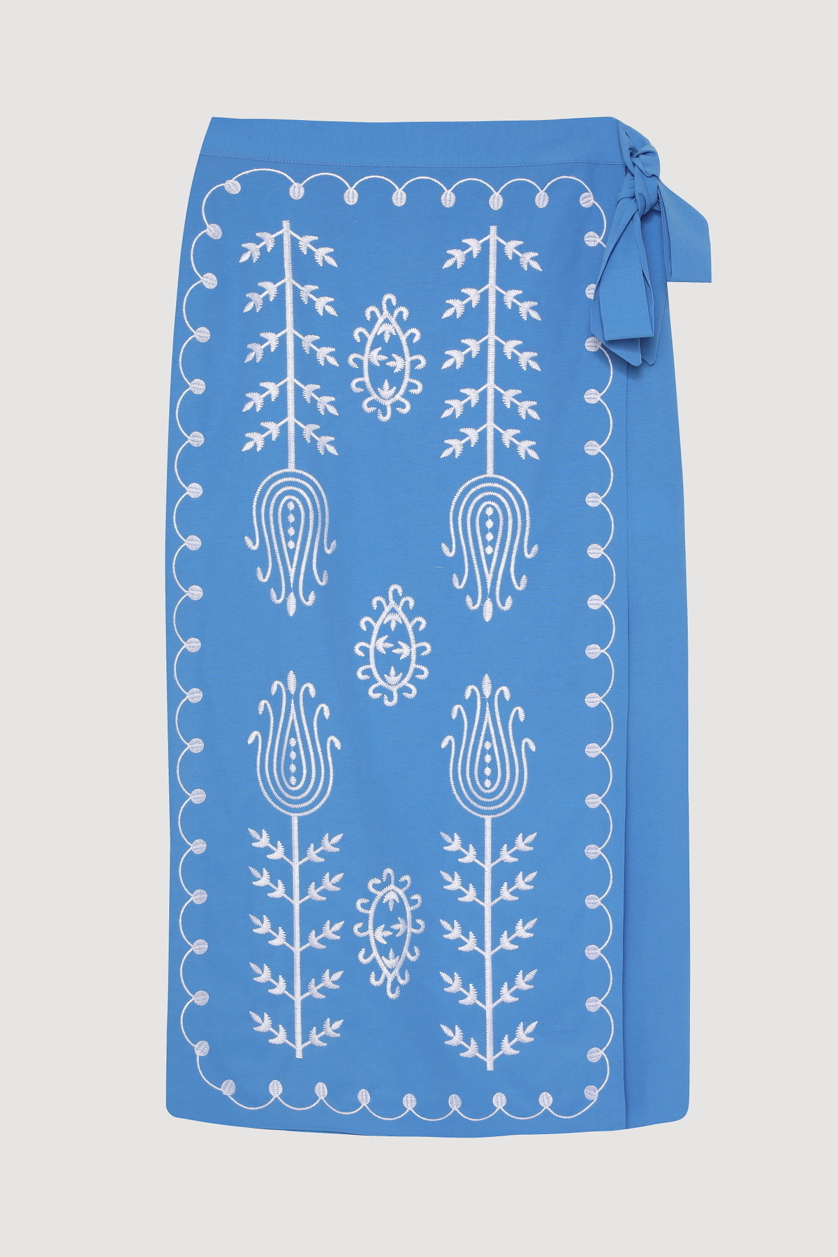 Lale Nakışlı Bağlamalı Midi Boy Etek Mavi Lale Nakışlı Bağlamalı Midi Boy Etek Mavi 25YETK00719 L