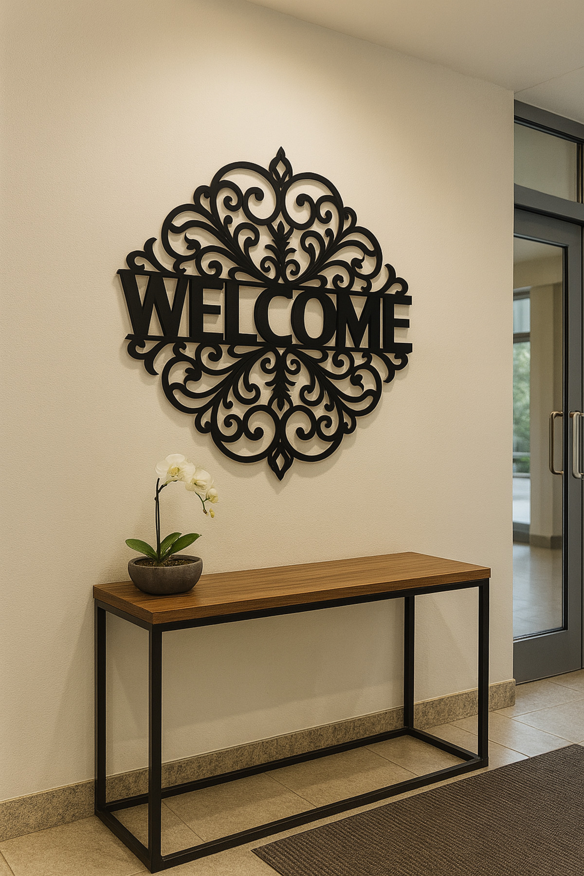 Welcome Yazılı Desenli Metal Tablo | Giriş İçin Karşılama Duvar Dekoru Welcome Yazılı Desenli Metal Tablo | Giriş İçin Karşılama Duvar Dekoru LN-2771 46 x 49