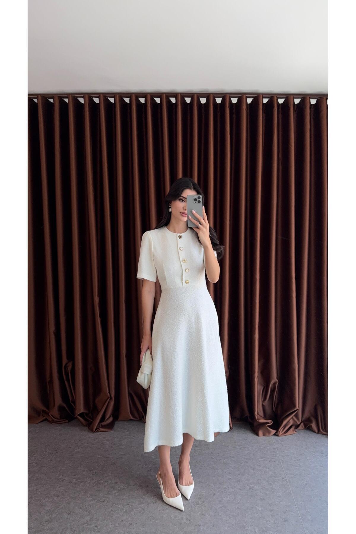 Kadın Maxi Boy Krem Keten Elbise Kadın Maxi Boy Krem Keten Elbise 25YE05193 L