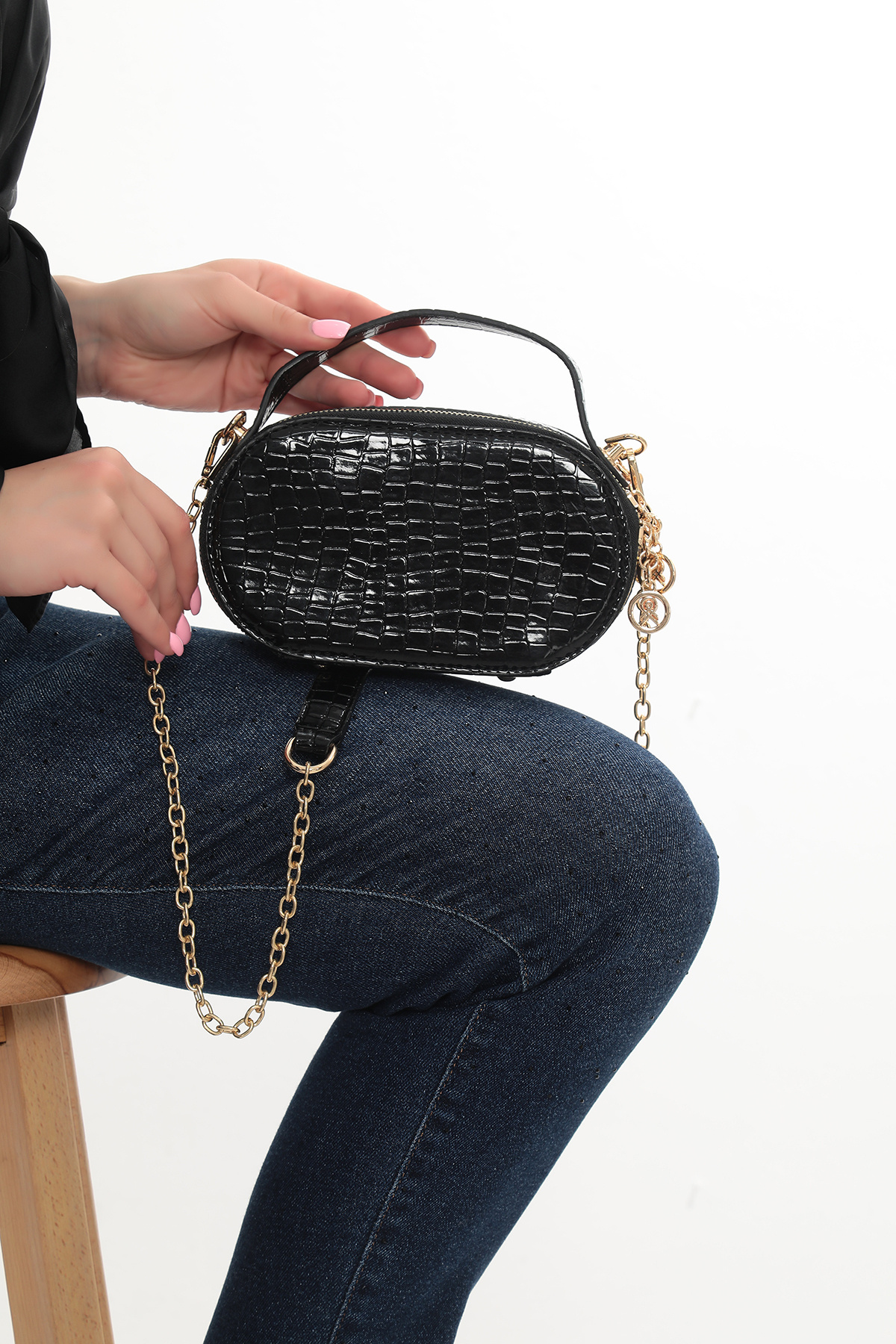 Siyah Kroko İki Bölmeli Zincir Askılı Kadın Omuz Çantası Siyah Kroko İki Bölmeli Zincir Askılı Kadın Omuz Çantası DD221 تک سایز