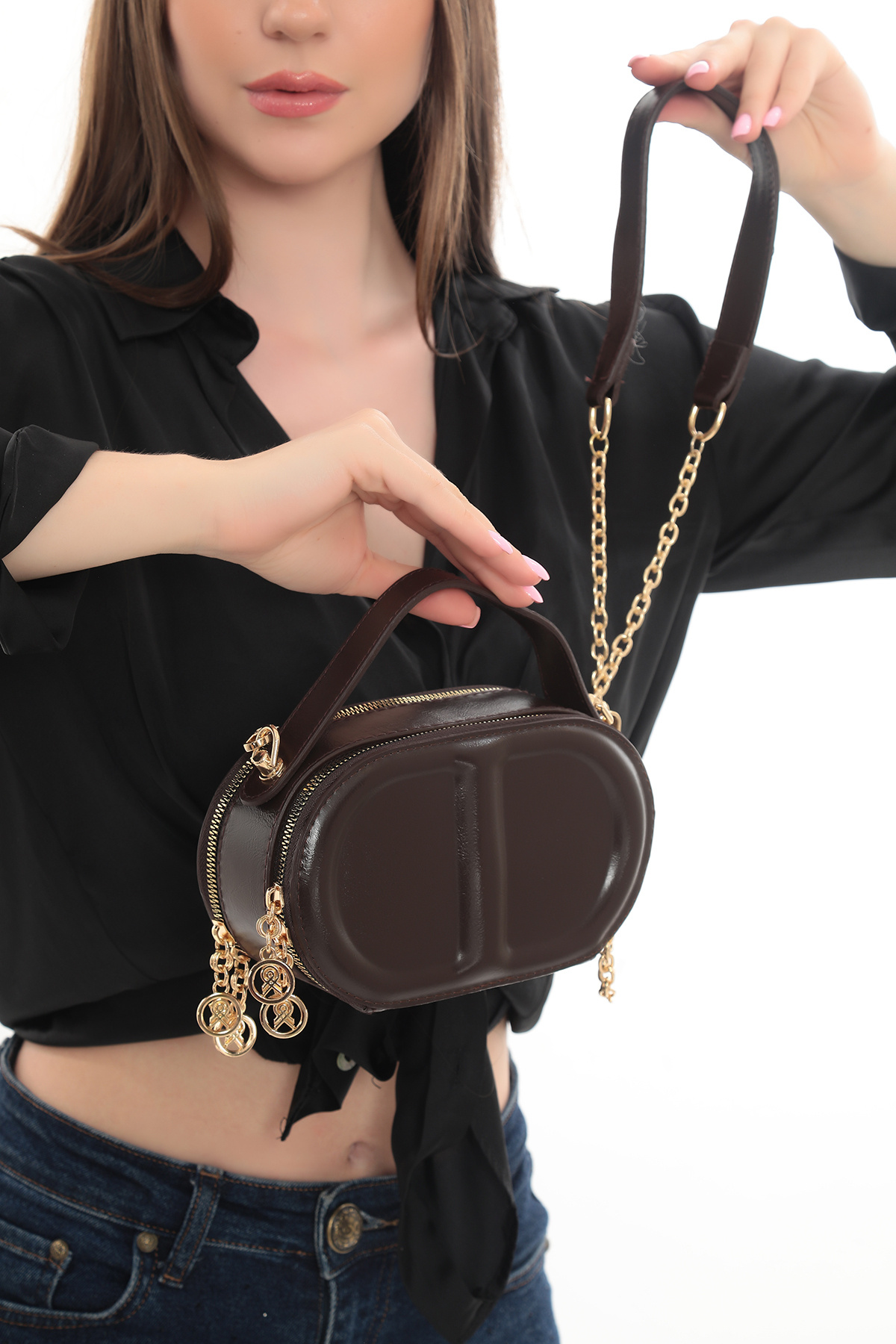 Kahverengi İki Bölmeli Zincir Askılı Kadın Omuz Çantası Kahverengi İki Bölmeli Zincir Askılı Kadın Omuz Çantası DD221 تک سایز