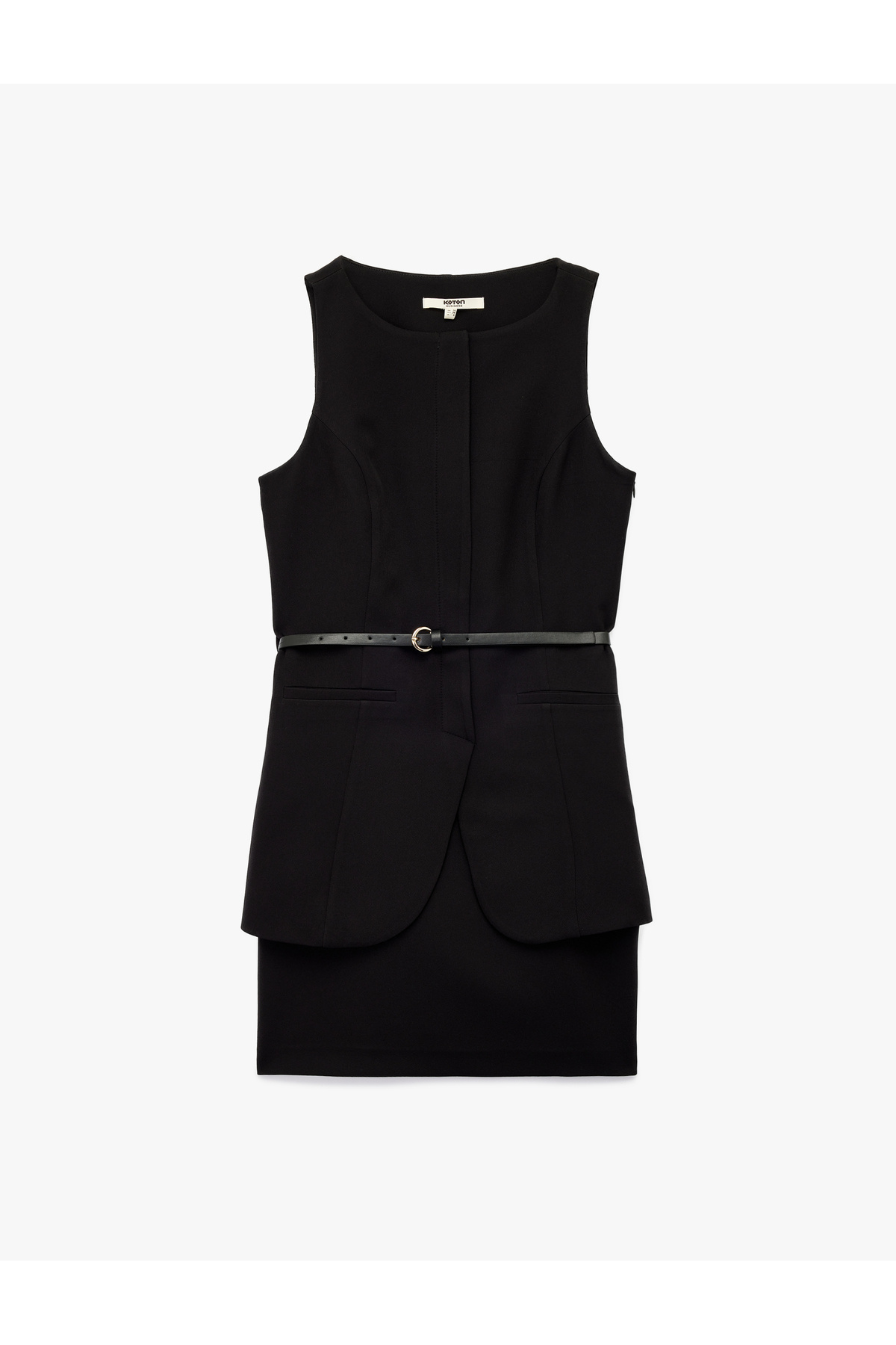 Krep Scuba Kumaş Kolsuz Bisiklet Yaka Drapeli Mini Elbise Krep Scuba Kumaş Kolsuz Bisiklet Yaka Drapeli Mini Elbise 6WAK80039EK XL