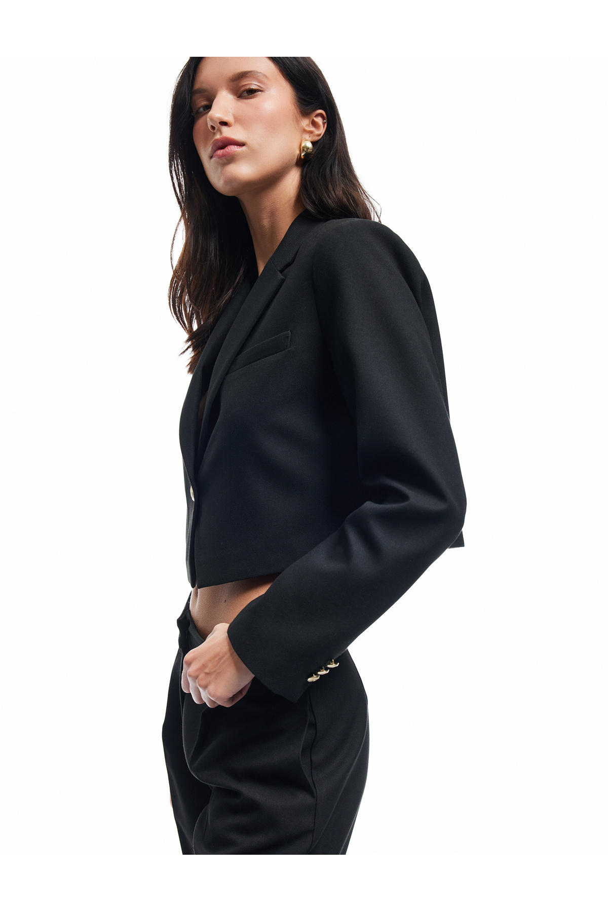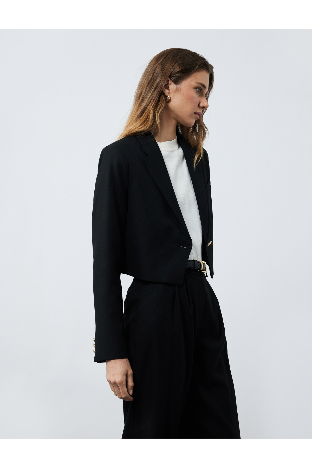 Kruvaze Uzun Kollu Crop Blazer Ceket Kruvaze Uzun Kollu Crop Blazer Ceket 6WAK50008PW 42