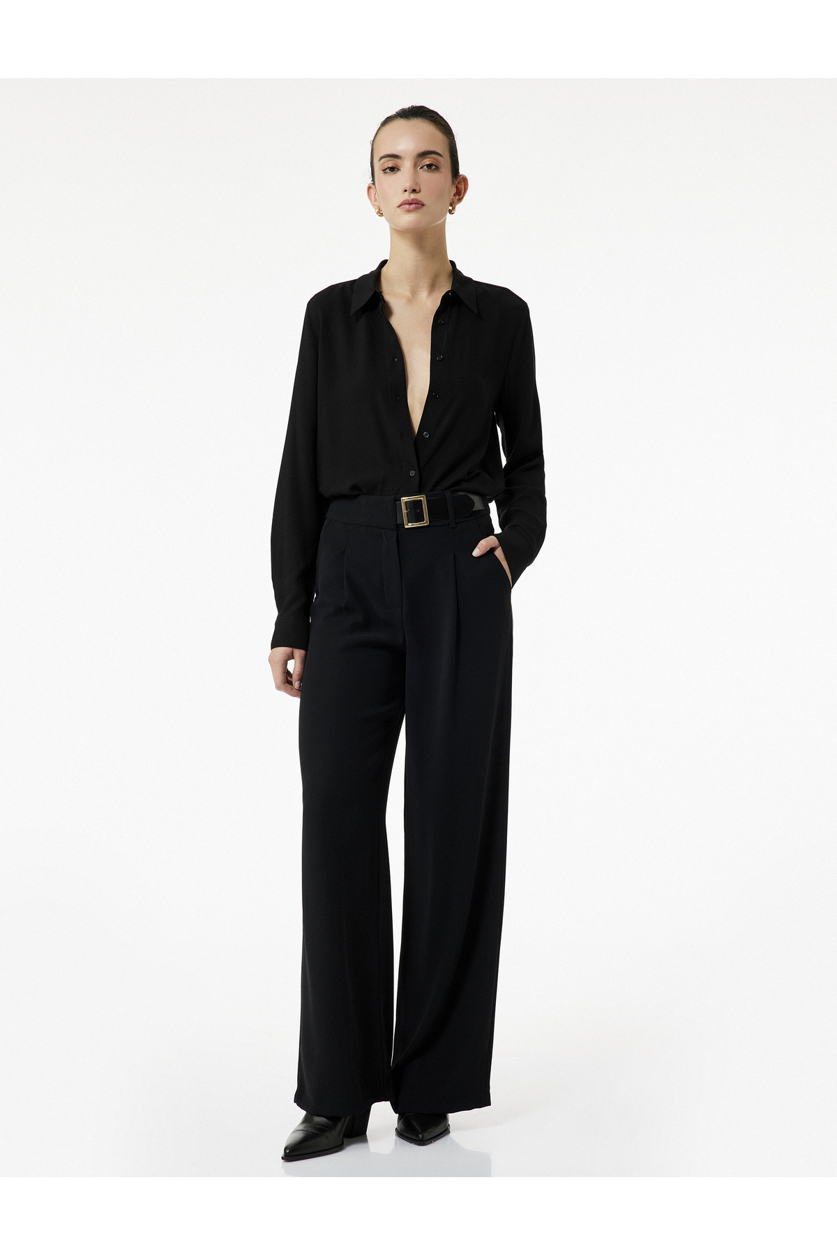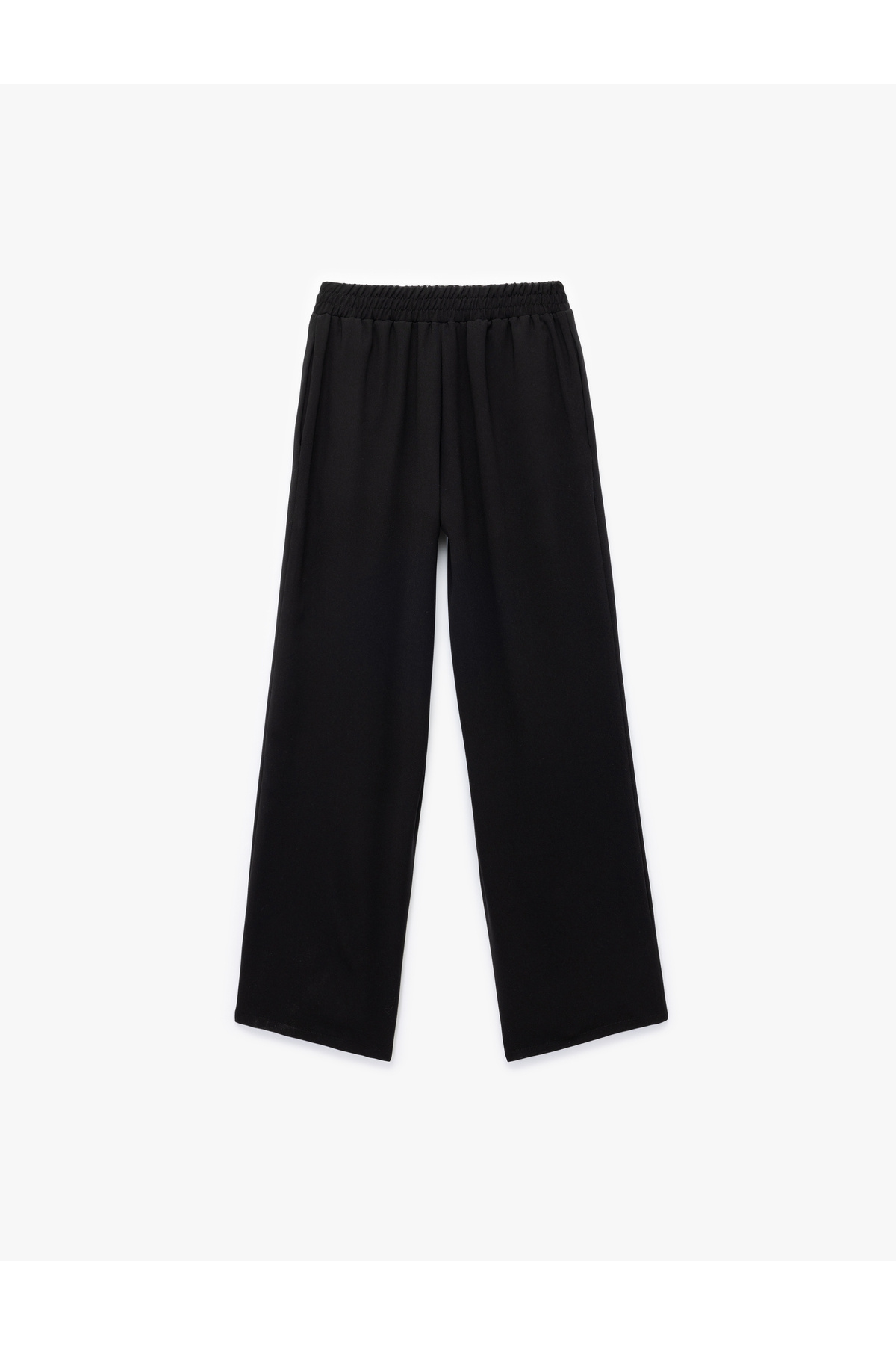 Krep Kumaş Beli Lastikli Düz Bol Paça Pantolon Krep Kumaş Beli Lastikli Düz Bol Paça Pantolon 6WAK40003EW 44