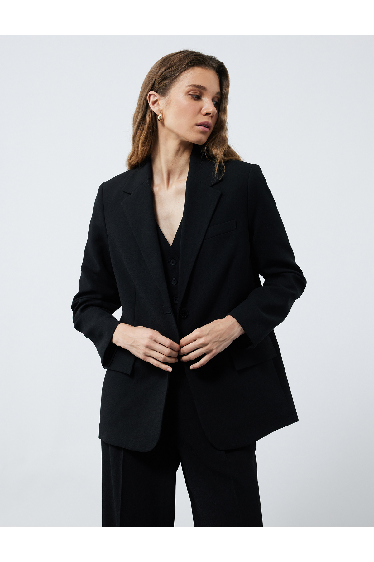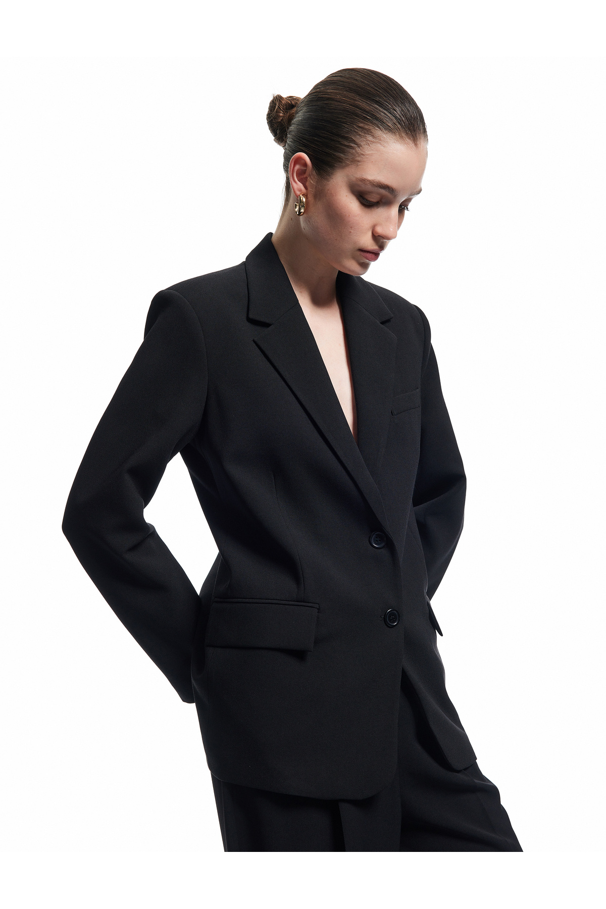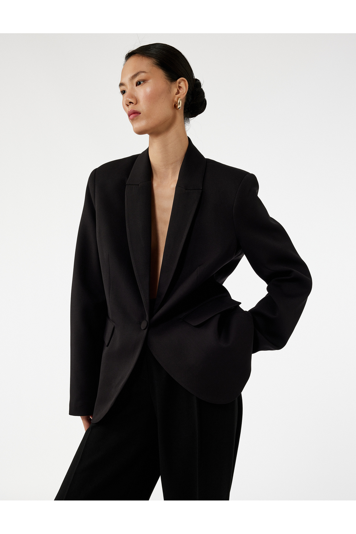 Krep Kumaş Cepli Düğmeli Uzun Kollu Kruvaze Oversize Blazer Ceket Krep Kumaş Cepli Düğmeli Uzun Kollu Kruvaze Oversize Blazer Ceket 6WAK50006PW 44