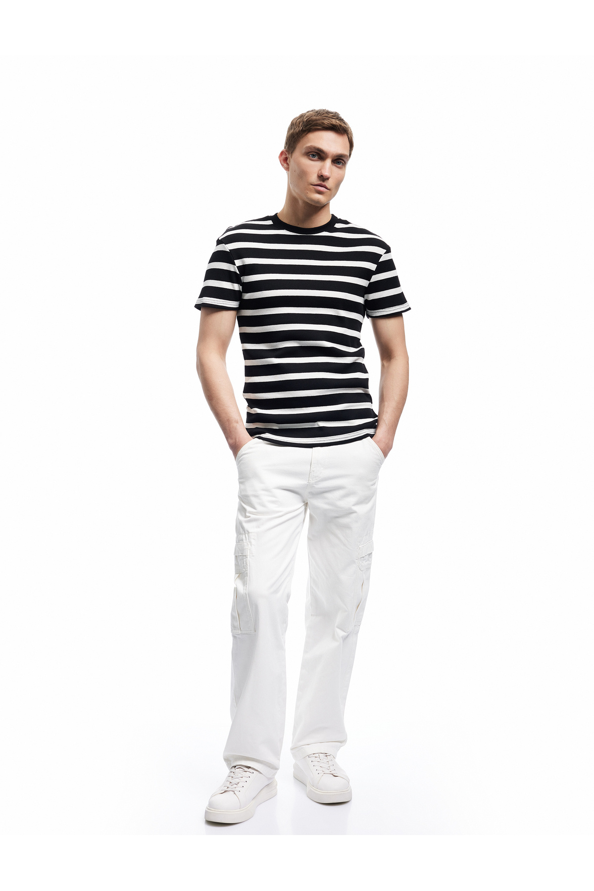 Kısa Kollu Bisiklet Yaka Slim Fit Çizgili Tişört Kısa Kollu Bisiklet Yaka Slim Fit Çizgili Tişört 6WAM10073HK 2XL