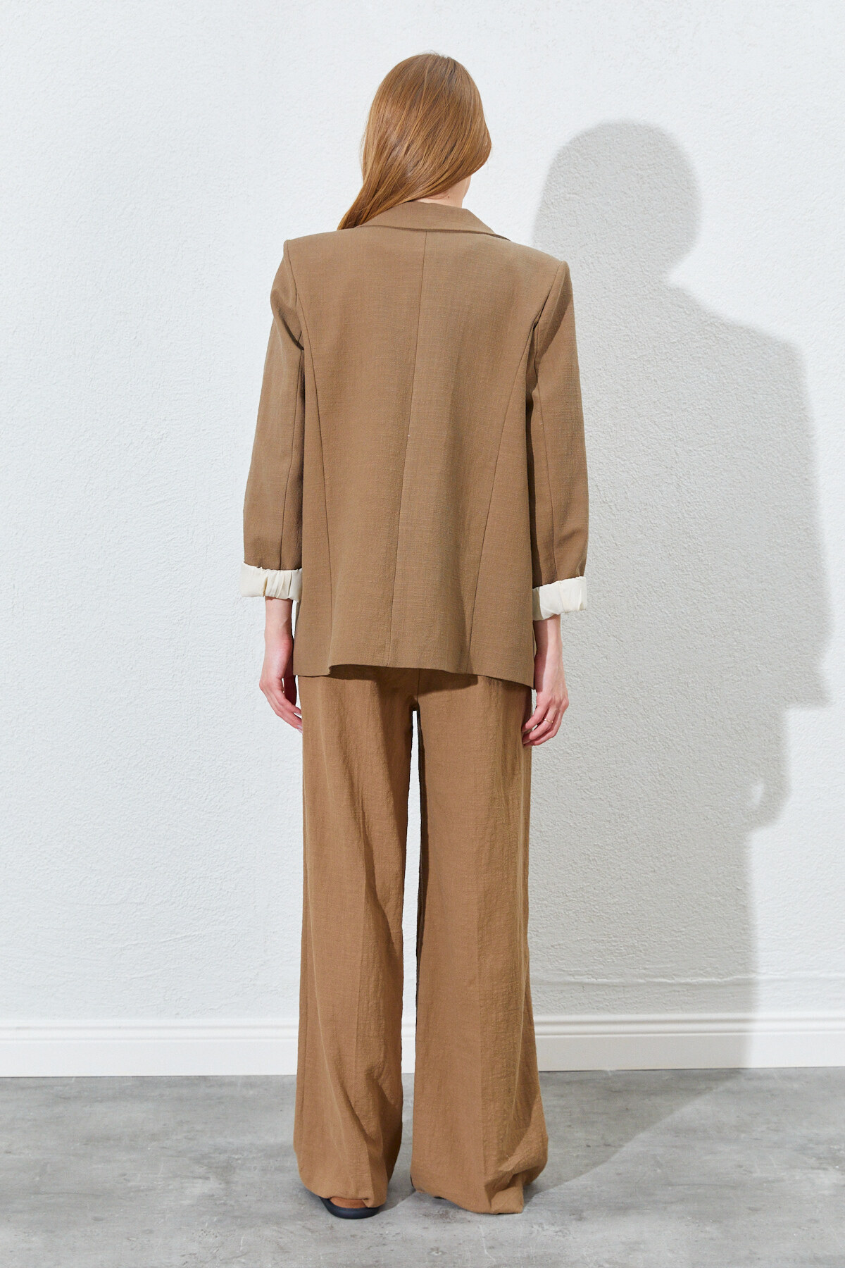 Kol Katlamalı Keten Blazer Ceket - Kahve | MKS351938-01 Kol Katlamalı Keten Blazer Ceket - Kahve | MKS351938-01 L