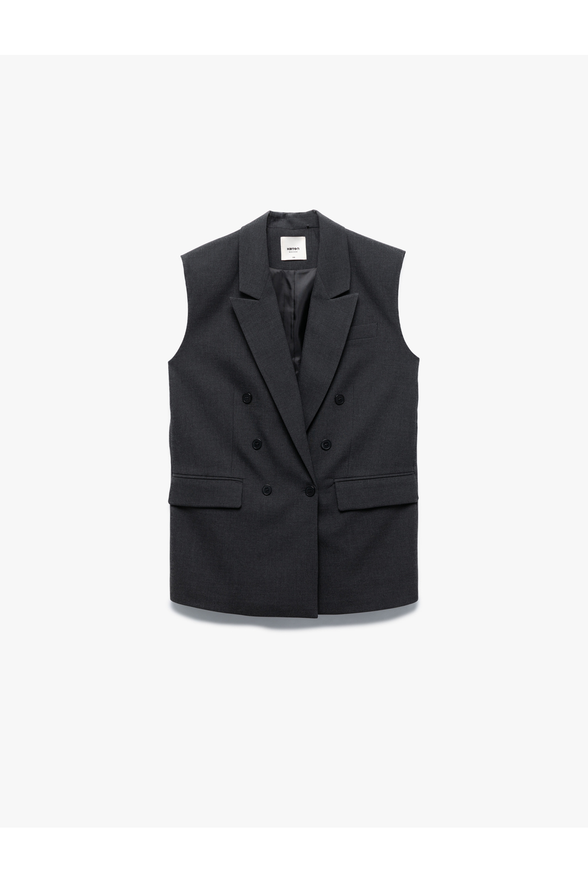 Astarlı Cepli Kruvaze Düğmeli Kolsuz Uzun Blazer Yelek Astarlı Cepli Kruvaze Düğmeli Kolsuz Uzun Blazer Yelek 6WAK20030UW 42
