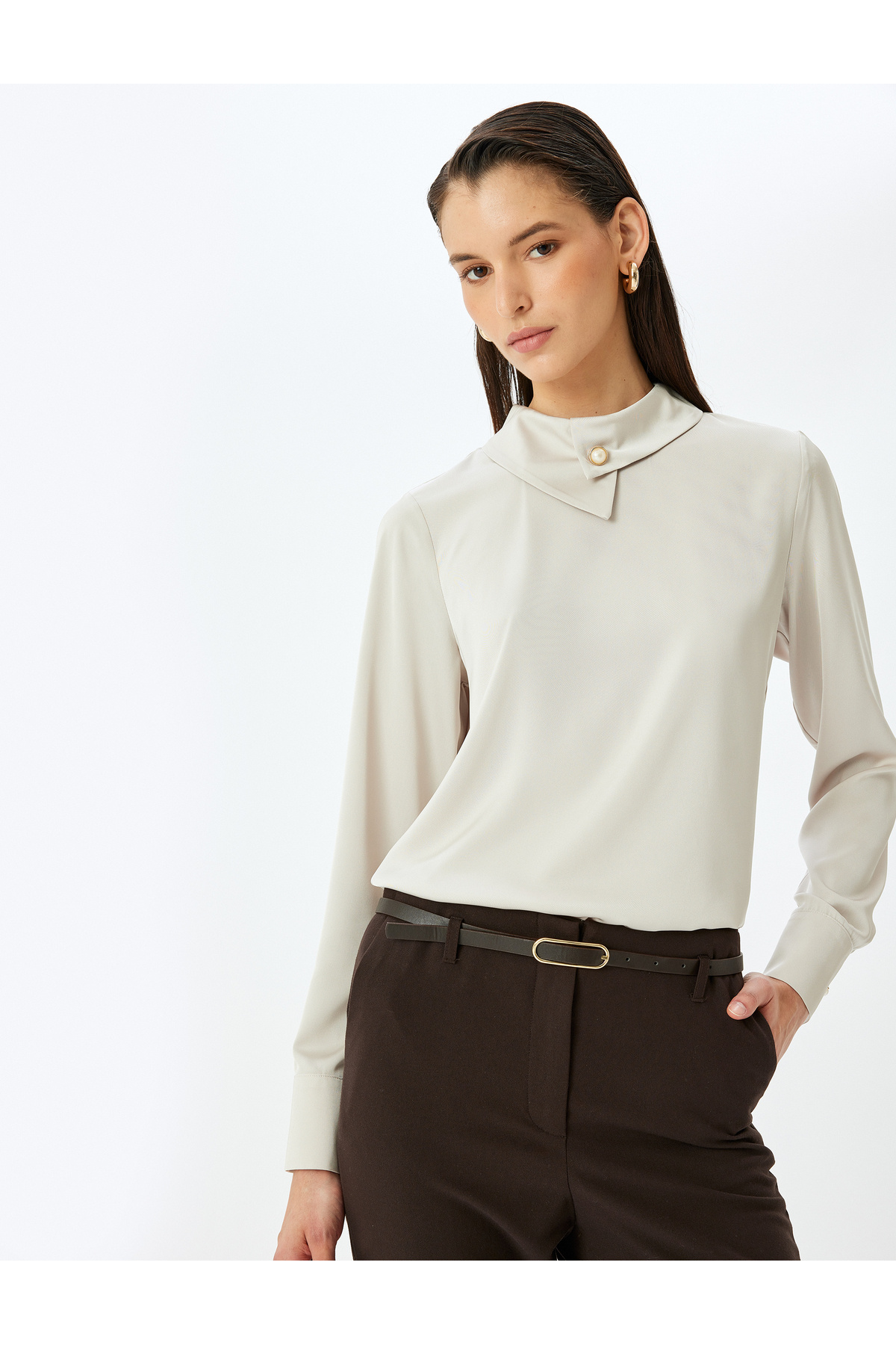 Metal Aksesuarlı Dik Yaka Kolsuz Kemerli Uzun Bluz Metal Aksesuarlı Dik Yaka Kolsuz Kemerli Uzun Bluz 6WAK70002UK 2XL