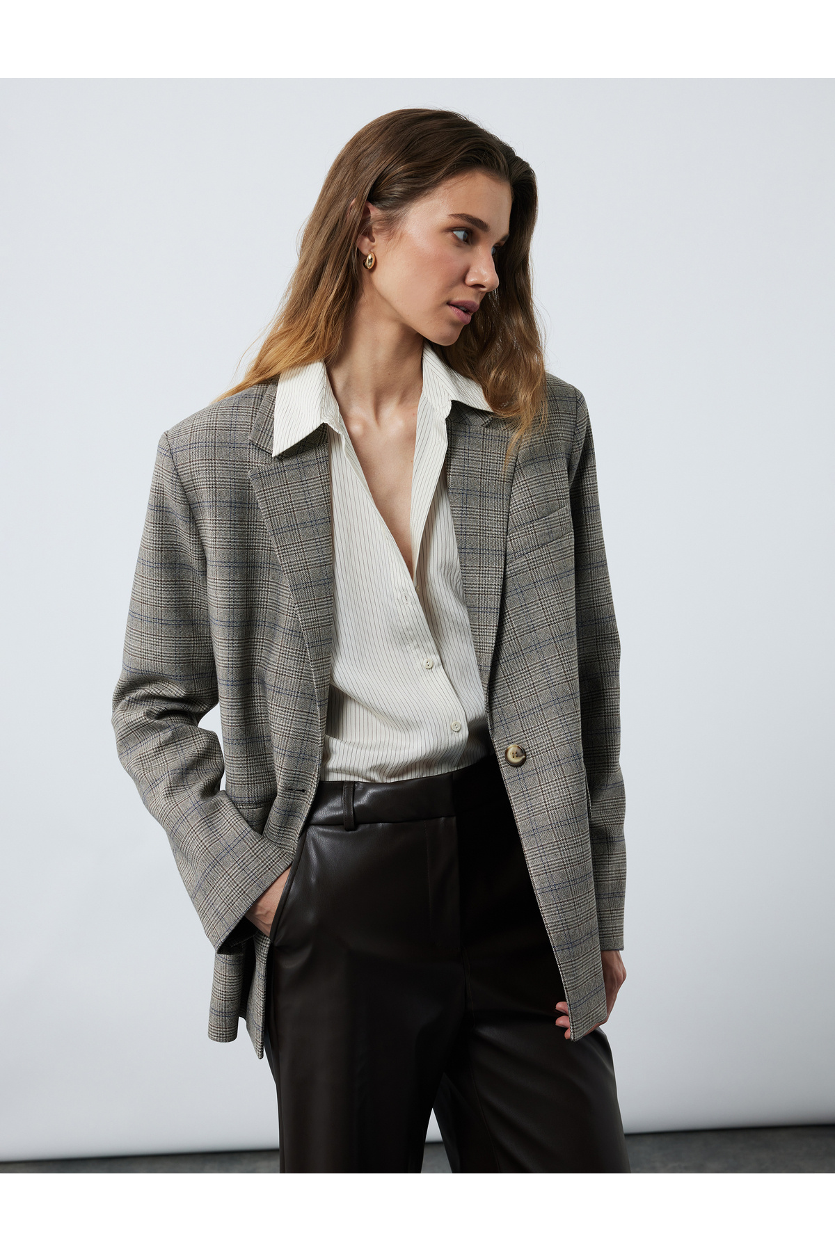 Kruvaze Cepli Uzun Kollu Ekose Oversize Blazer Ceket Kruvaze Cepli Uzun Kollu Ekose Oversize Blazer Ceket 6WAK50015PW 42