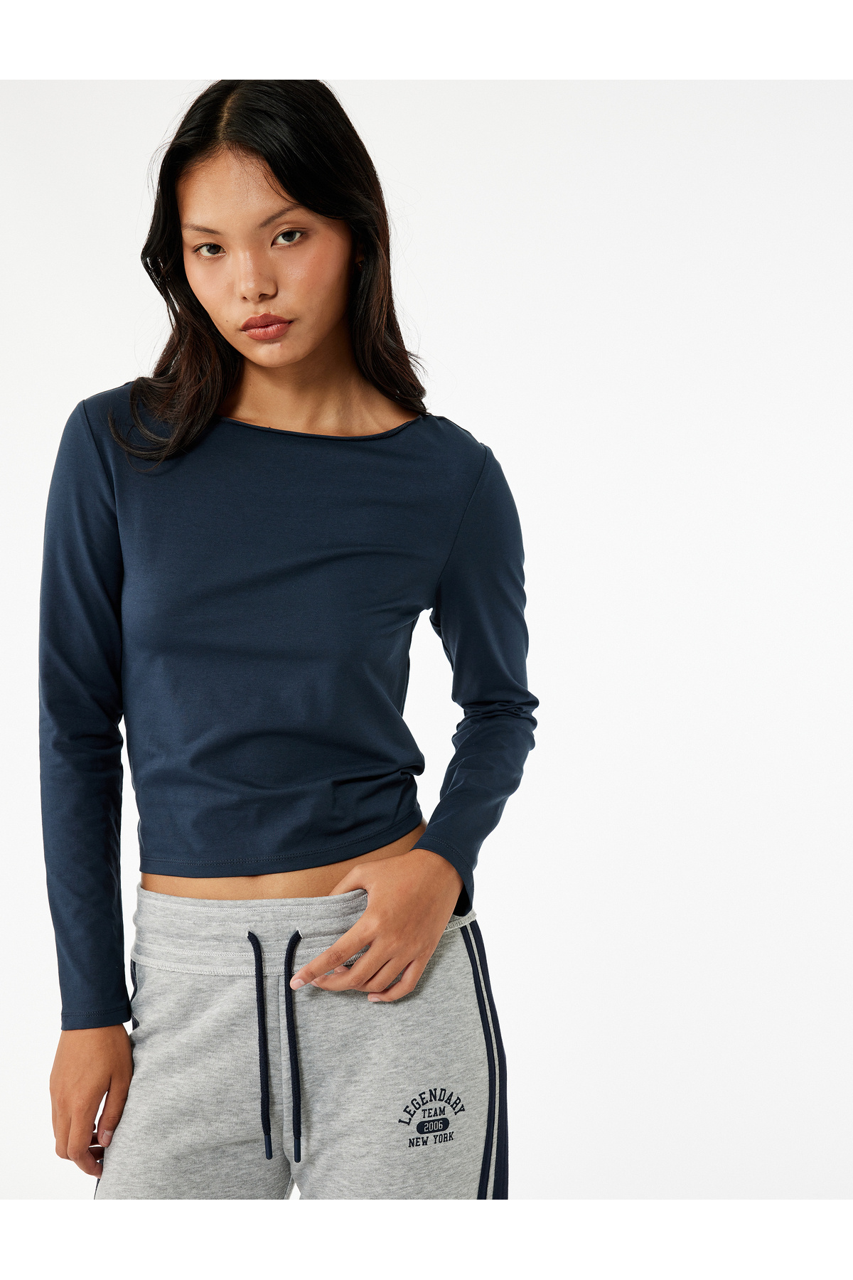 Drape Detaylı Dar Kesim Uzun Kollu Tişört Drape Detaylı Dar Kesim Uzun Kollu Tişört 6WAL10251IK XL