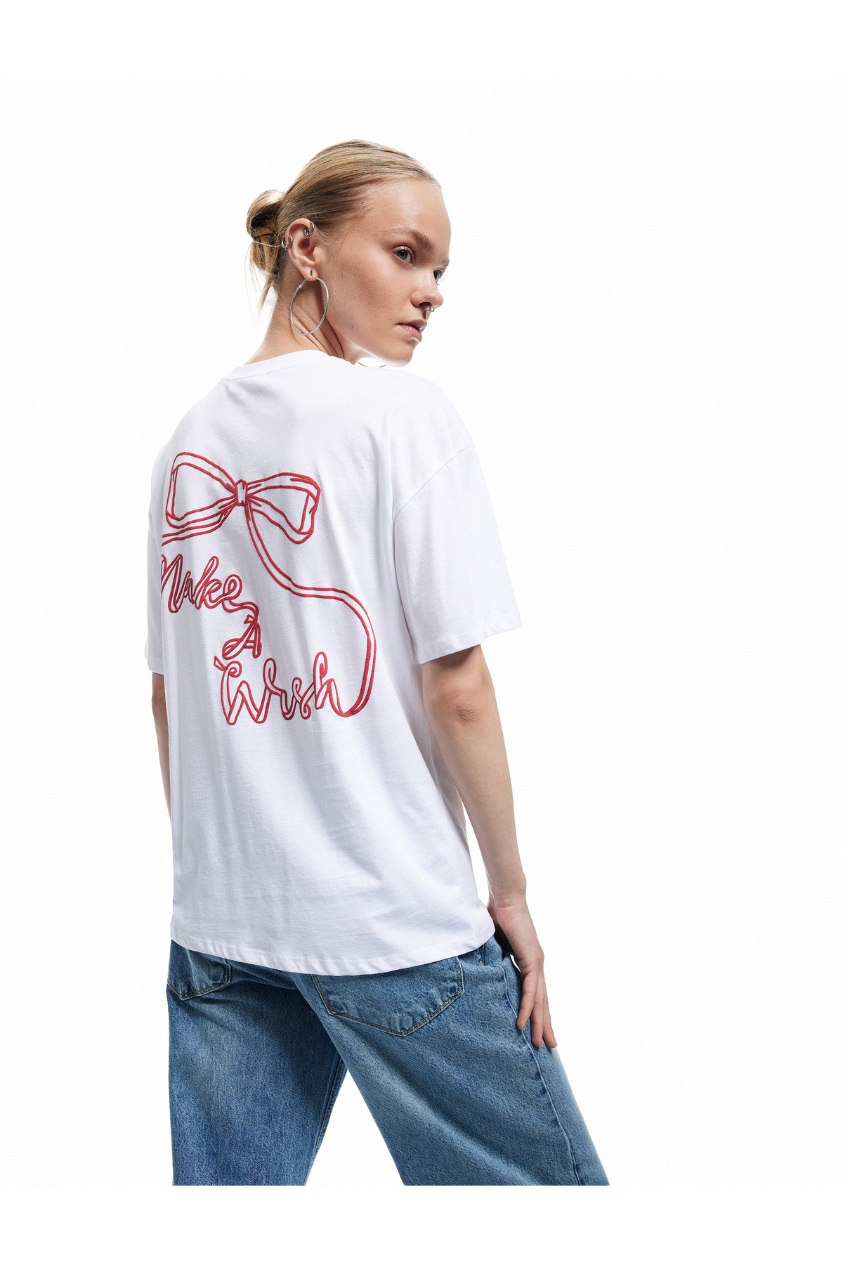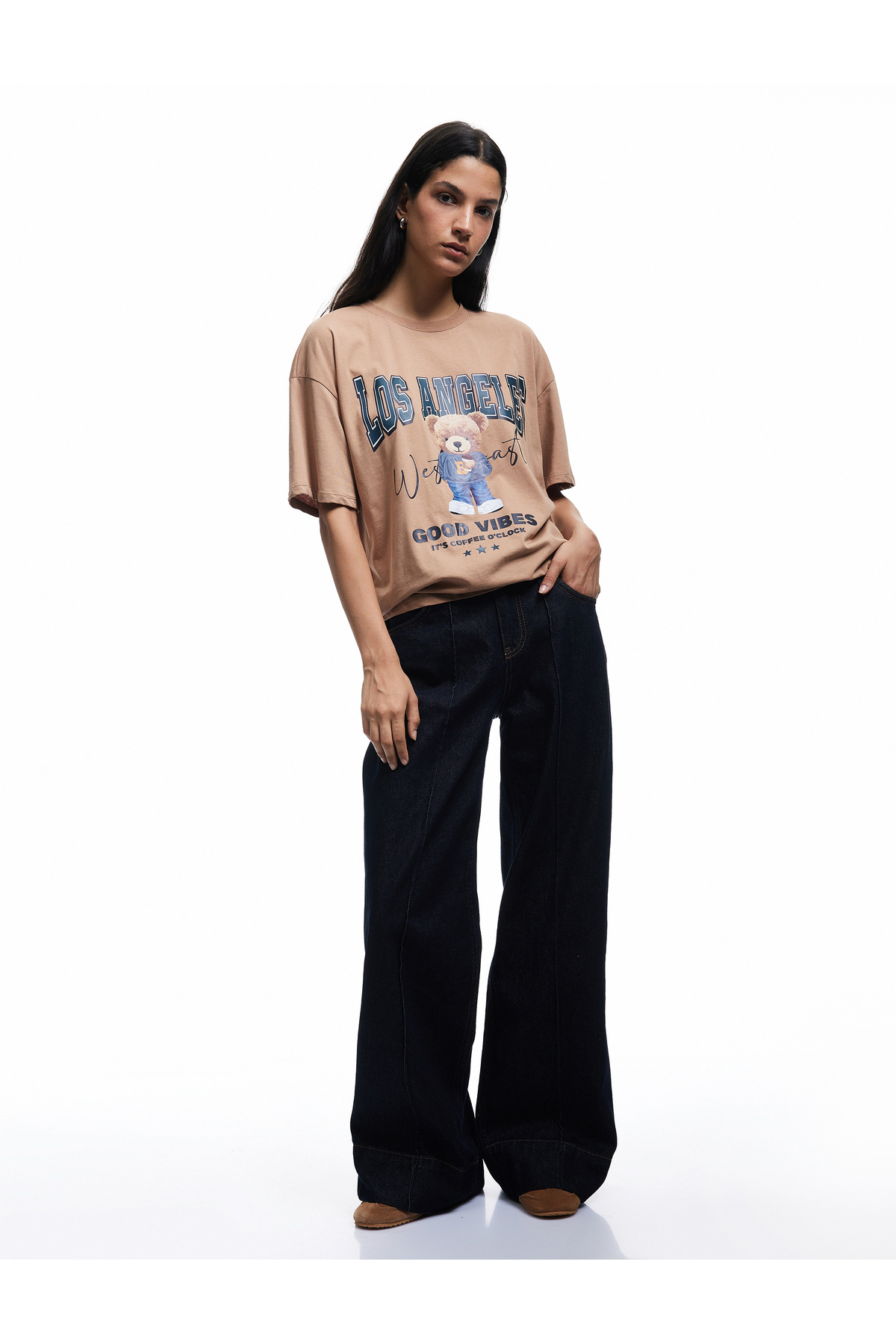 Kısa Kollu Bisiklet Yaka Pamuklu Ayıcık Baskılı Oversize Tişört Kısa Kollu Bisiklet Yaka Pamuklu Ayıcık Baskılı Oversize Tişört 6WAL10340IK 2XL