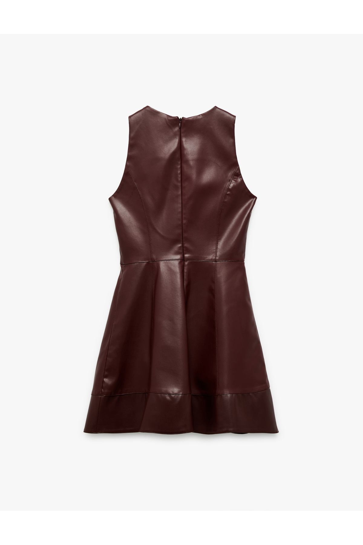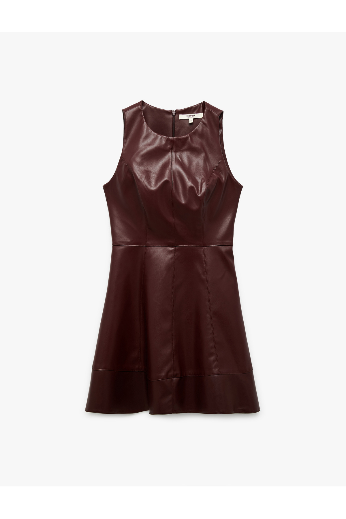 Kolsuz Bisiklet Yaka A Kesim Suni Deri Mini Elbise Kolsuz Bisiklet Yaka A Kesim Suni Deri Mini Elbise 6WAK80009UW 42