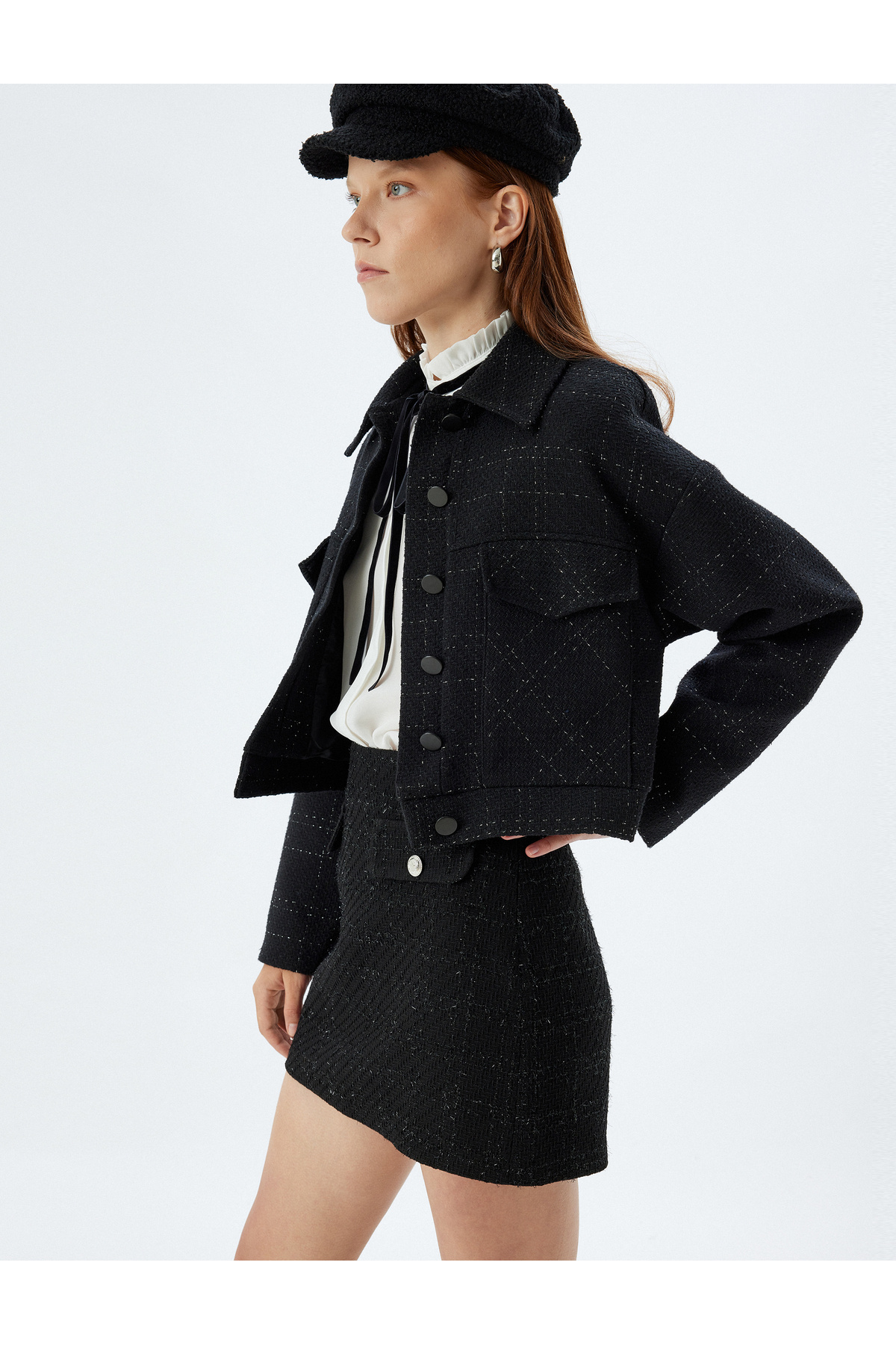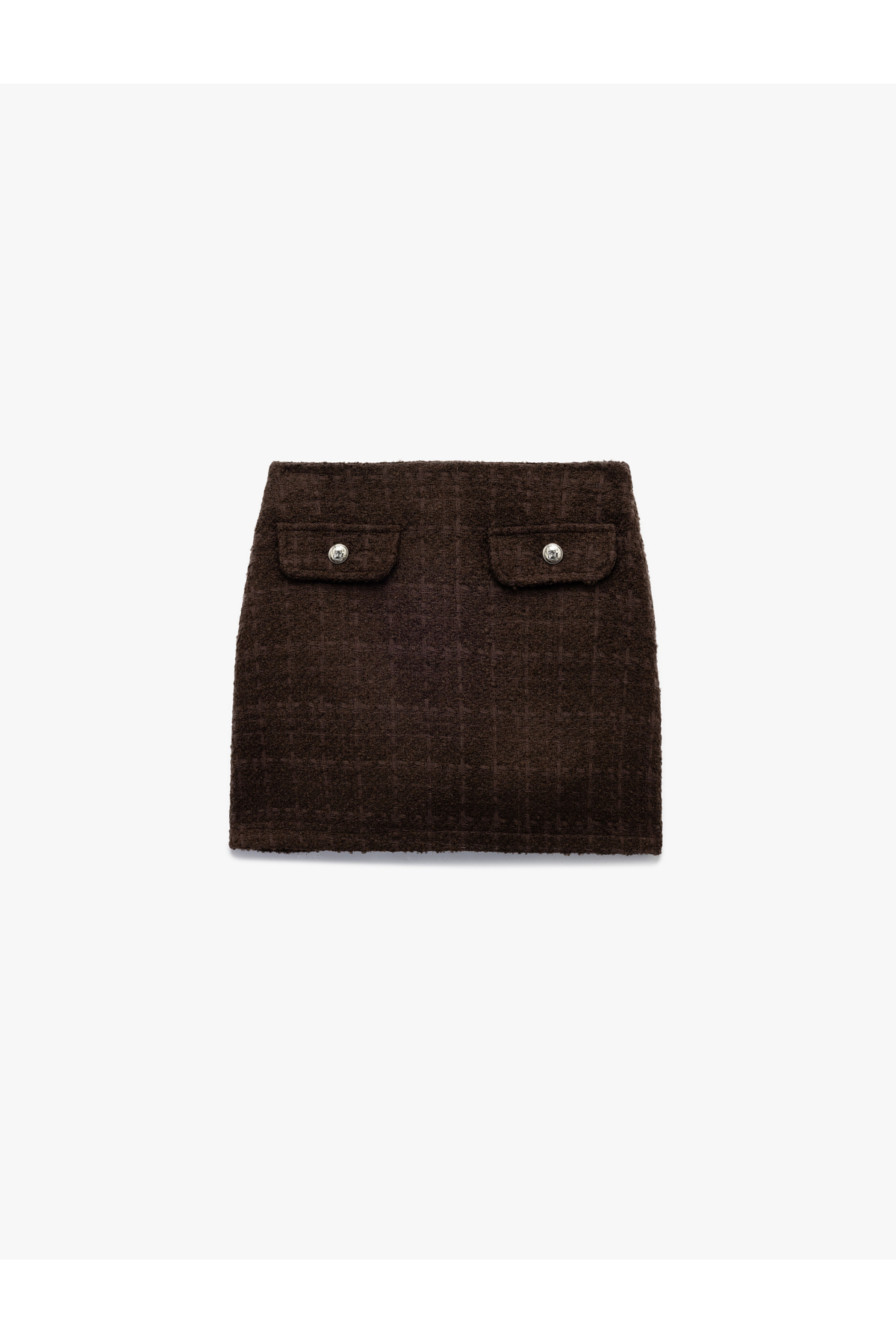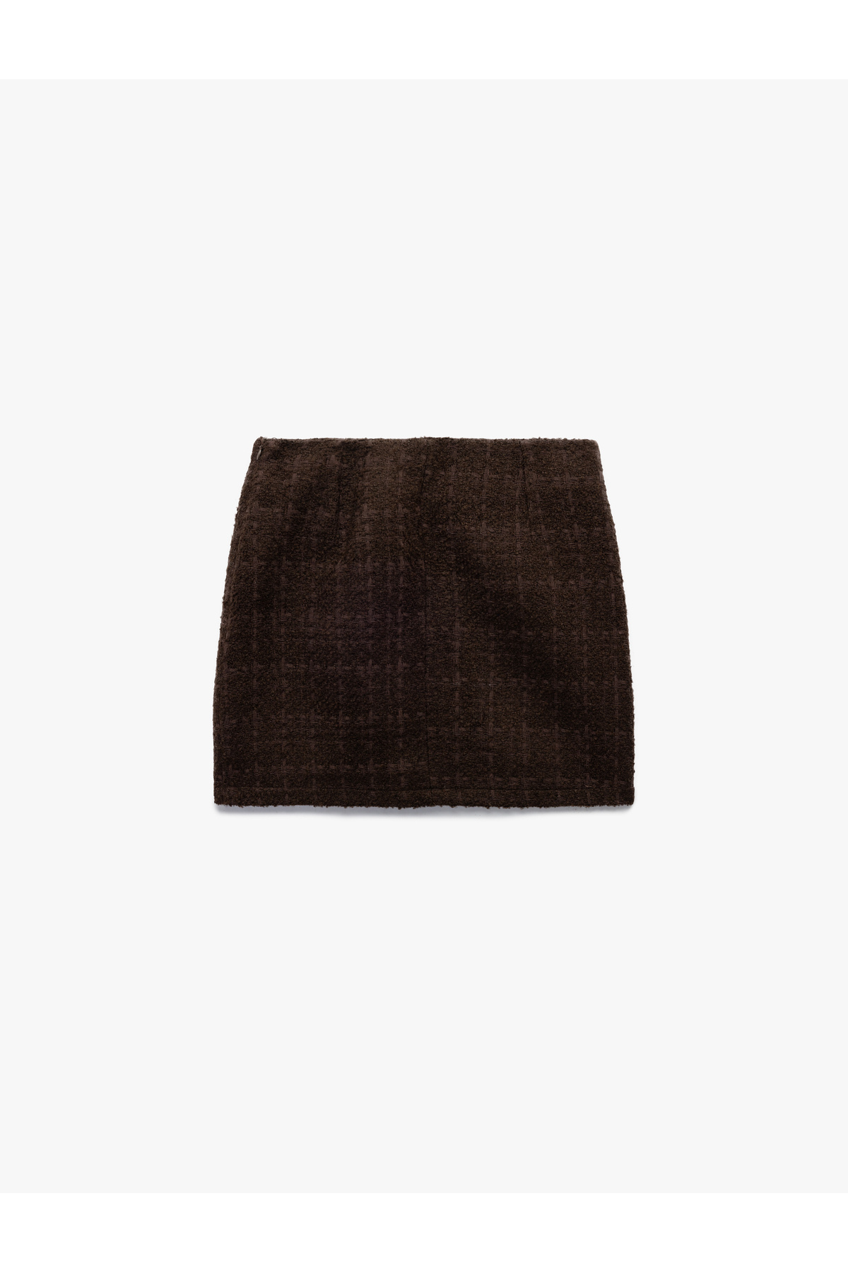Aplike Detaylı Kareli Yüksek Bel Mini Tüvit Etek Aplike Detaylı Kareli Yüksek Bel Mini Tüvit Etek 6WAK70041UW 42