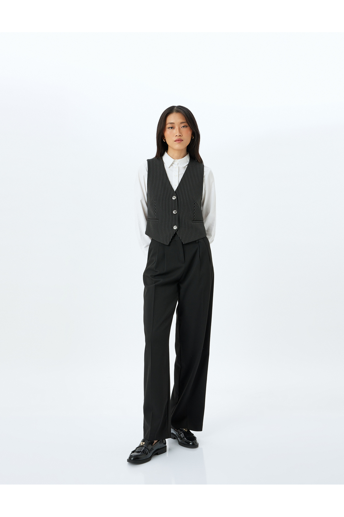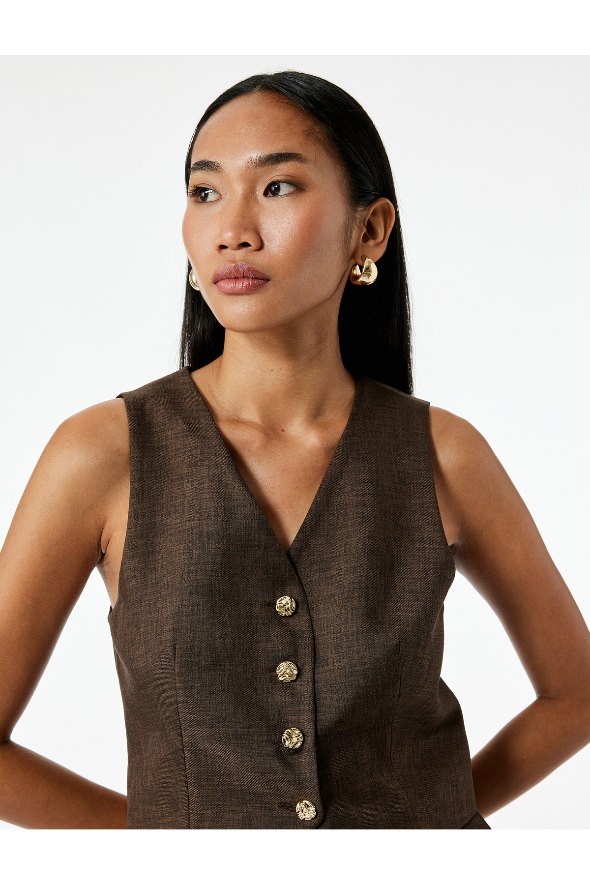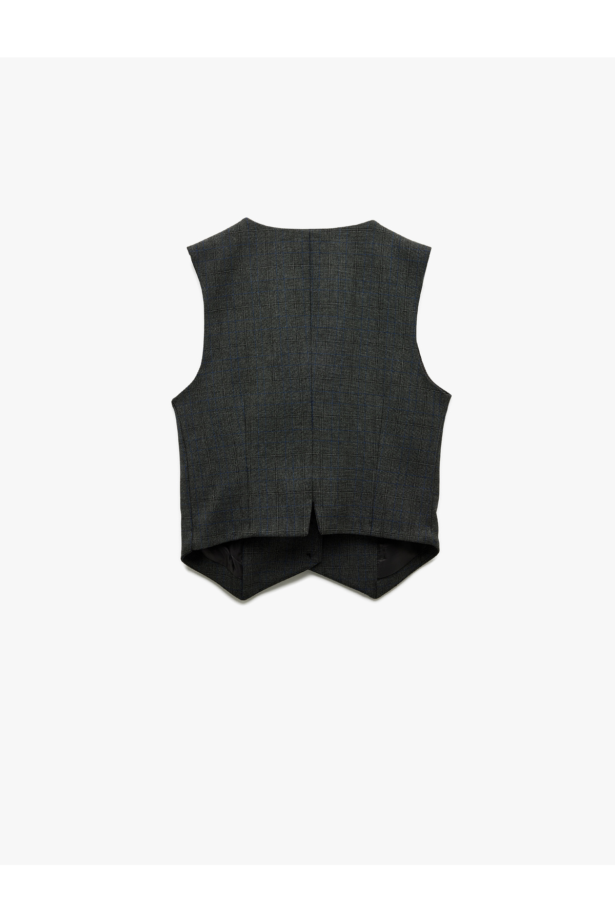 V Yaka Kolsuz Düğmeli Cepli Kareli Blazer Yelek V Yaka Kolsuz Düğmeli Cepli Kareli Blazer Yelek 6WAK20032UW 42