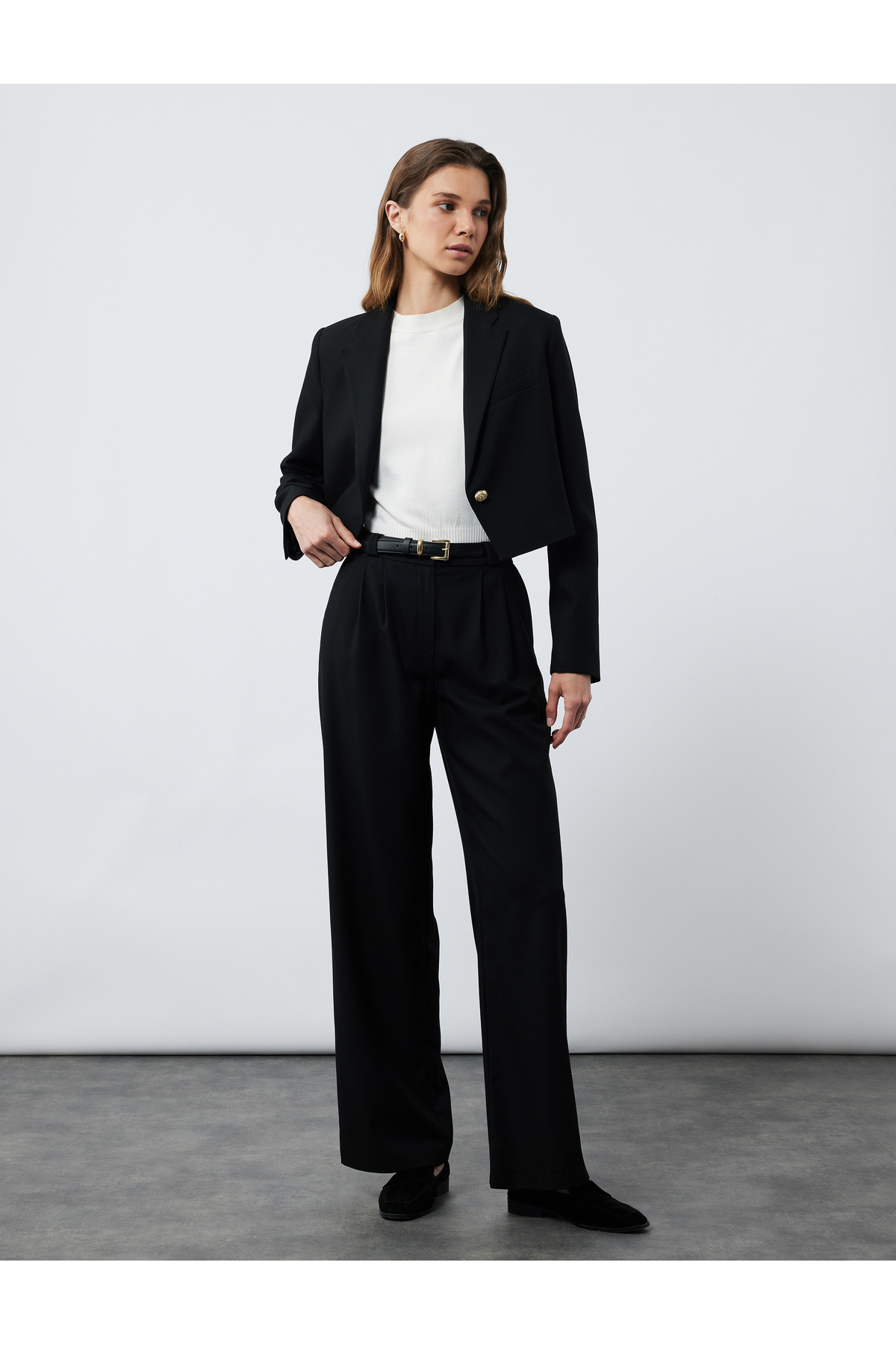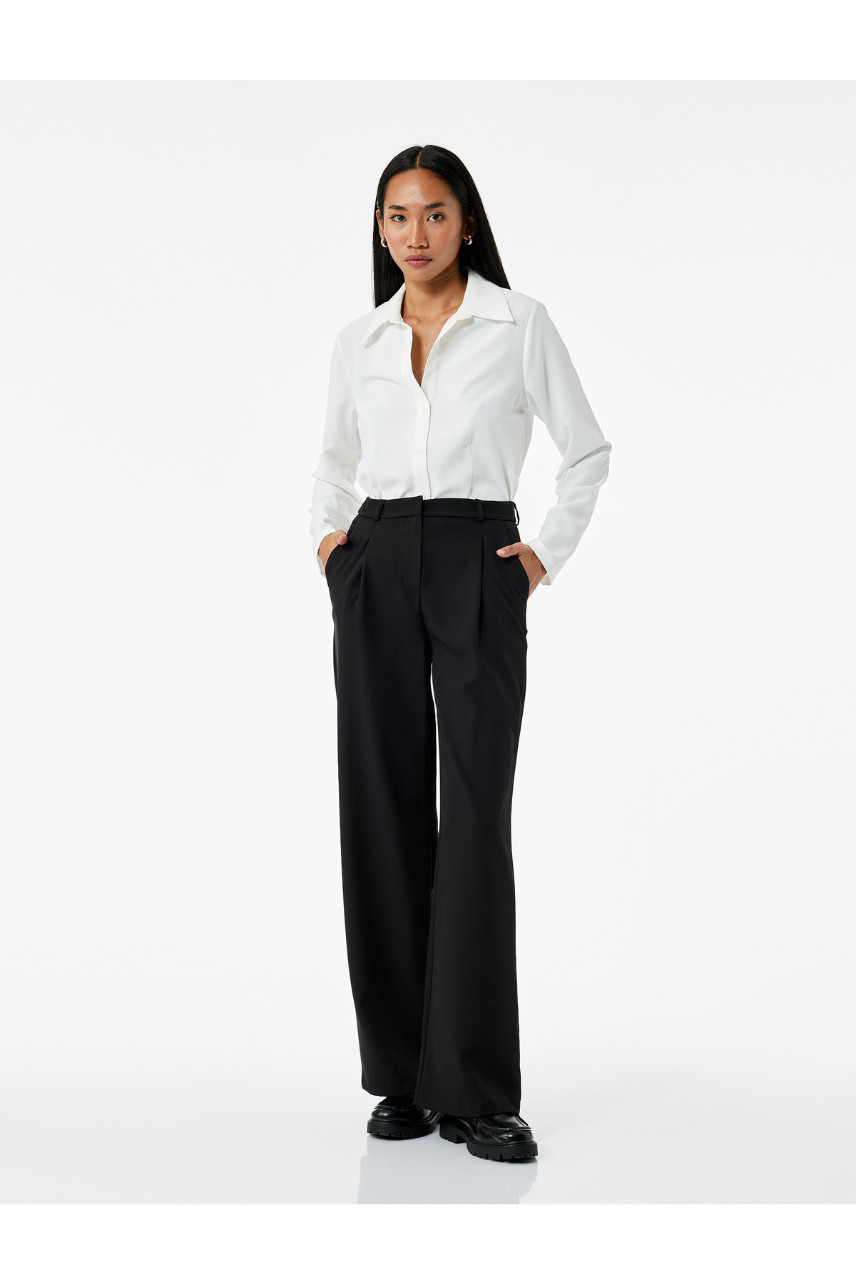 Cepli Pile Detaylı Yüksek Bel Palazzo Pantolon Cepli Pile Detaylı Yüksek Bel Palazzo Pantolon 6WAK40030UW 44