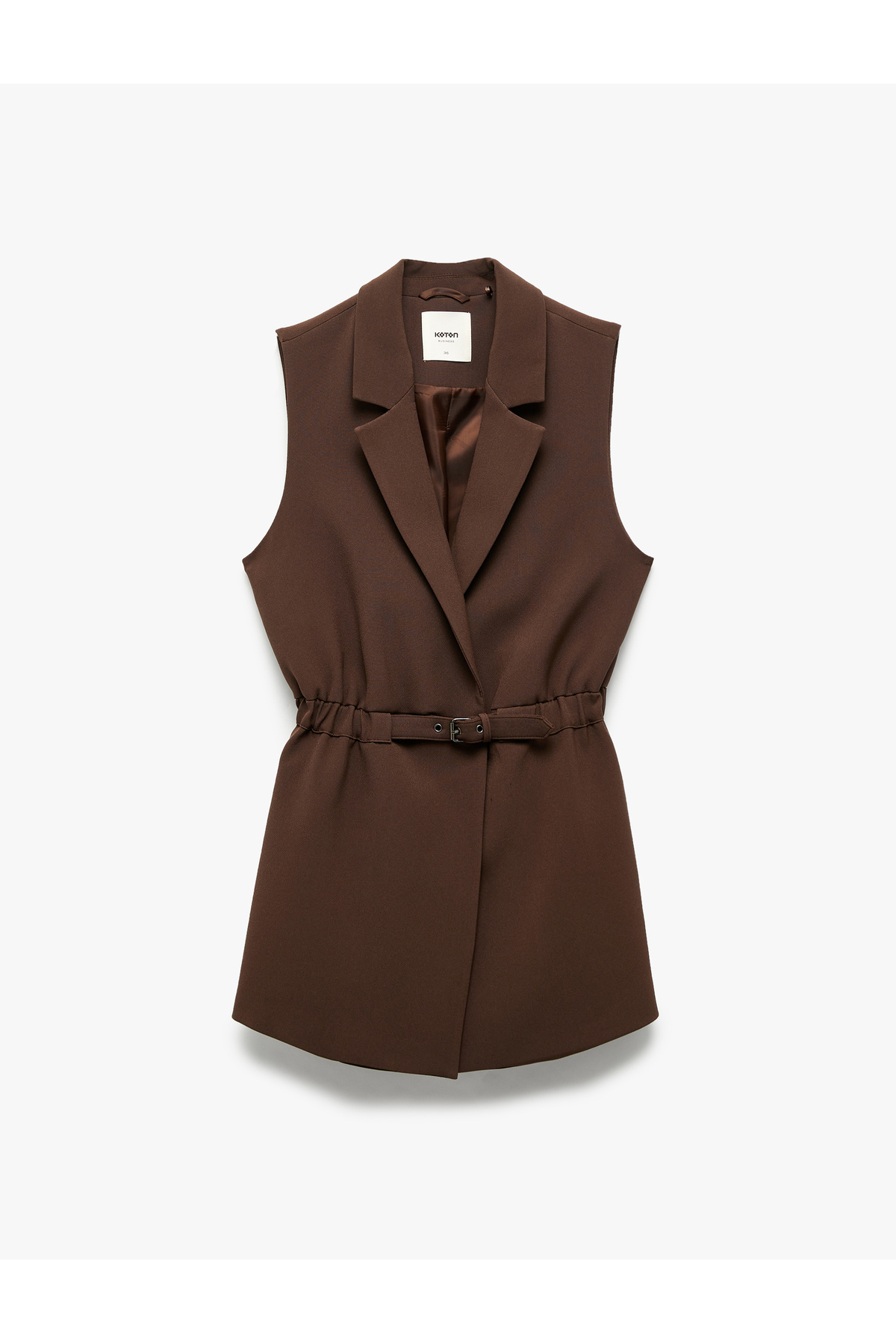 Astarlı Kruvaze Kolsuz Kemerli Uzun Yelek Astarlı Kruvaze Kolsuz Kemerli Uzun Yelek 6WAK20012UW 42