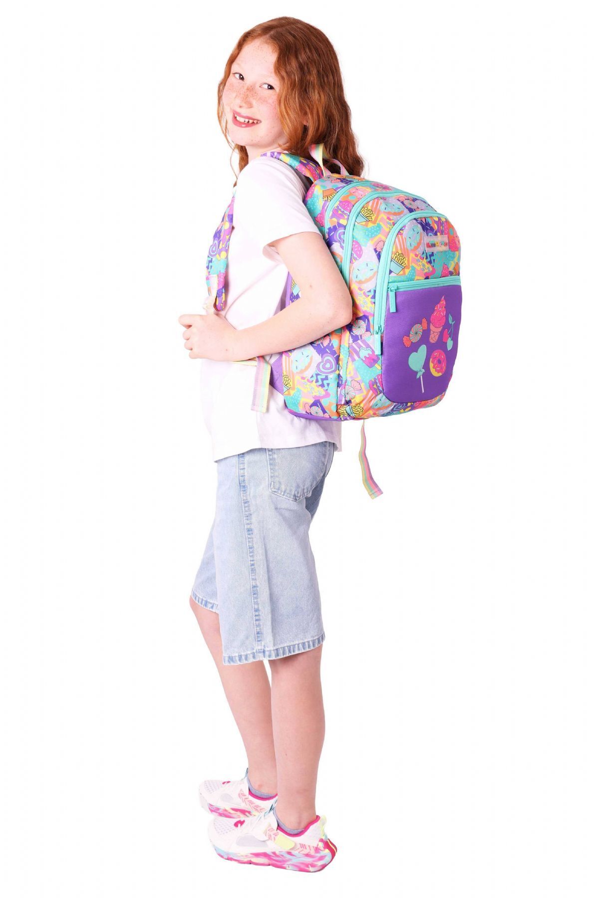 Üç Bölmeli Kız Çocuk İlkokul Sırt Çantası (L5231) - Yeşil Mor - Şekerleme Desenli Üç Bölmeli Kız Çocuk İlkokul Sırt Çantası (L5231) - Yeşil Mor - Şekerleme Desenli PZM2249 تک سایز