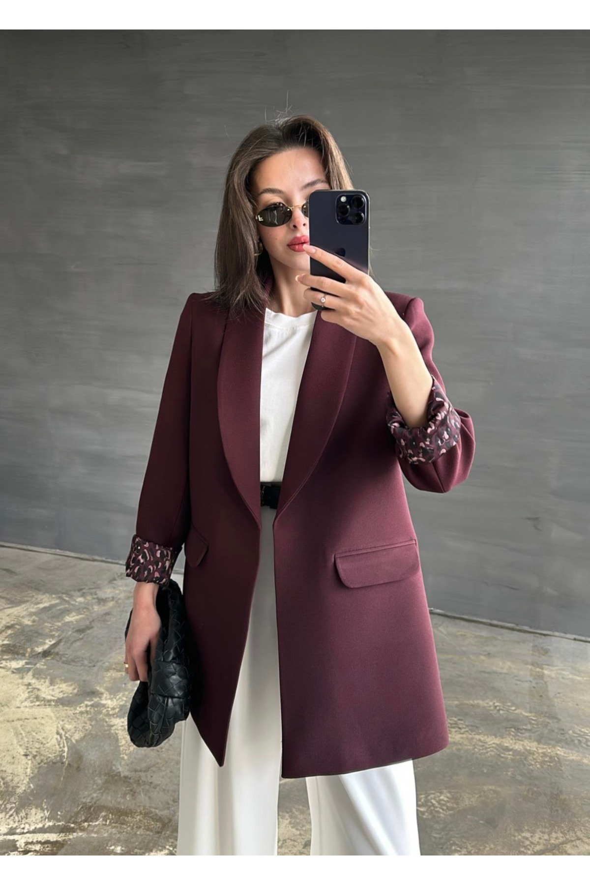 Leopar Astar Detaylı Blazer Ceket Leopar Astar Detaylı Blazer Ceket FT9727 XL