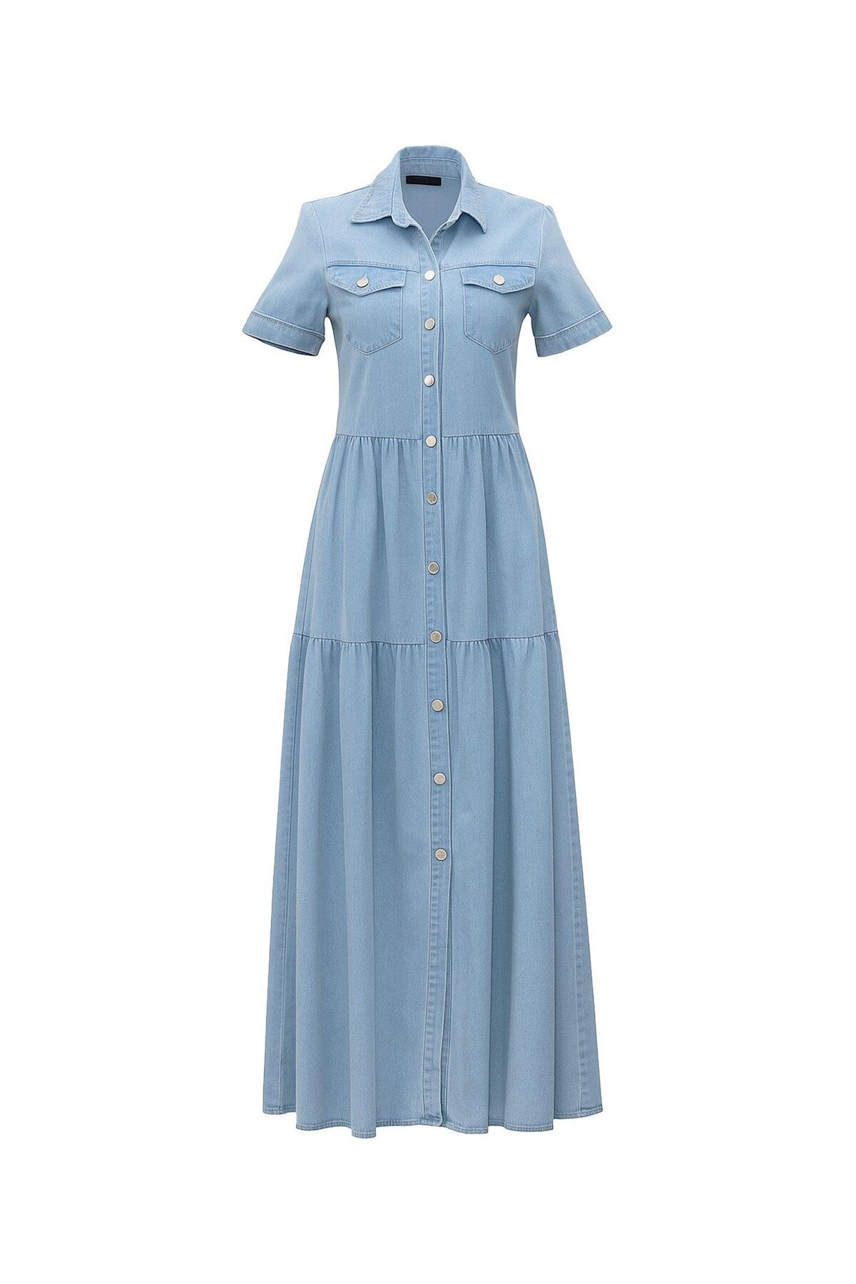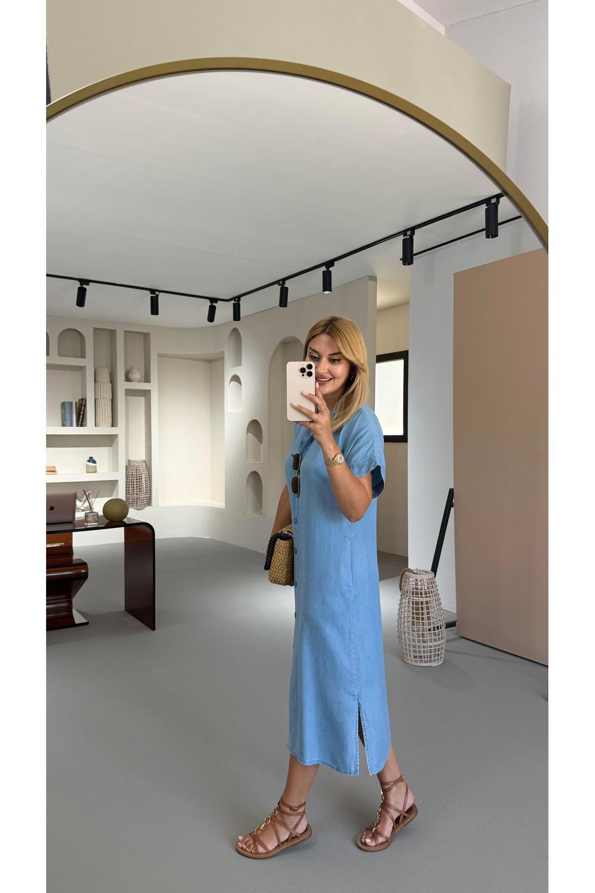 Boydan Düğmeli Buz Mavi Denim Gömlek Elbise Boydan Düğmeli Buz Mavi Denim Gömlek Elbise ELB-0709-B.MAVİ XL