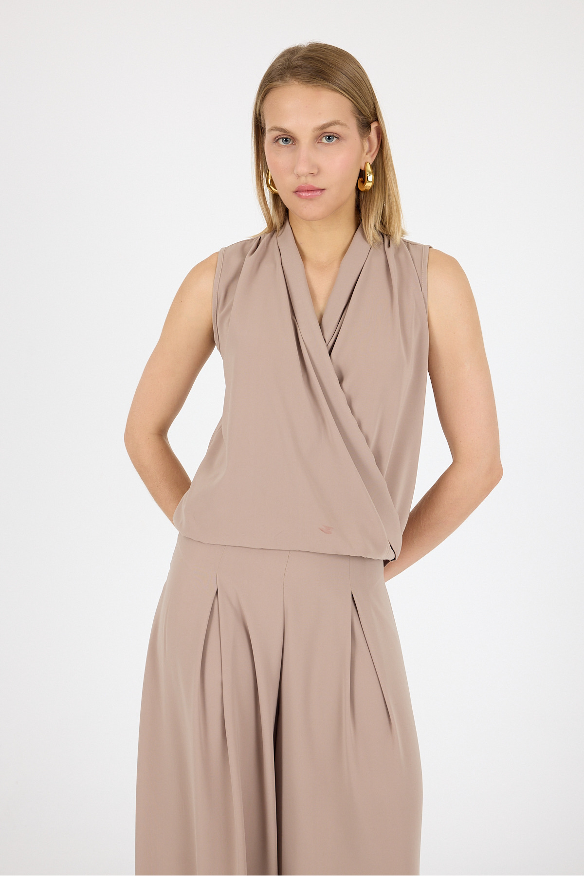 Ecru Kruvaze Yaka Medine İpeği Bluz 25L8104 Ecru Kruvaze Yaka Medine İpeği Bluz 25L8104 48