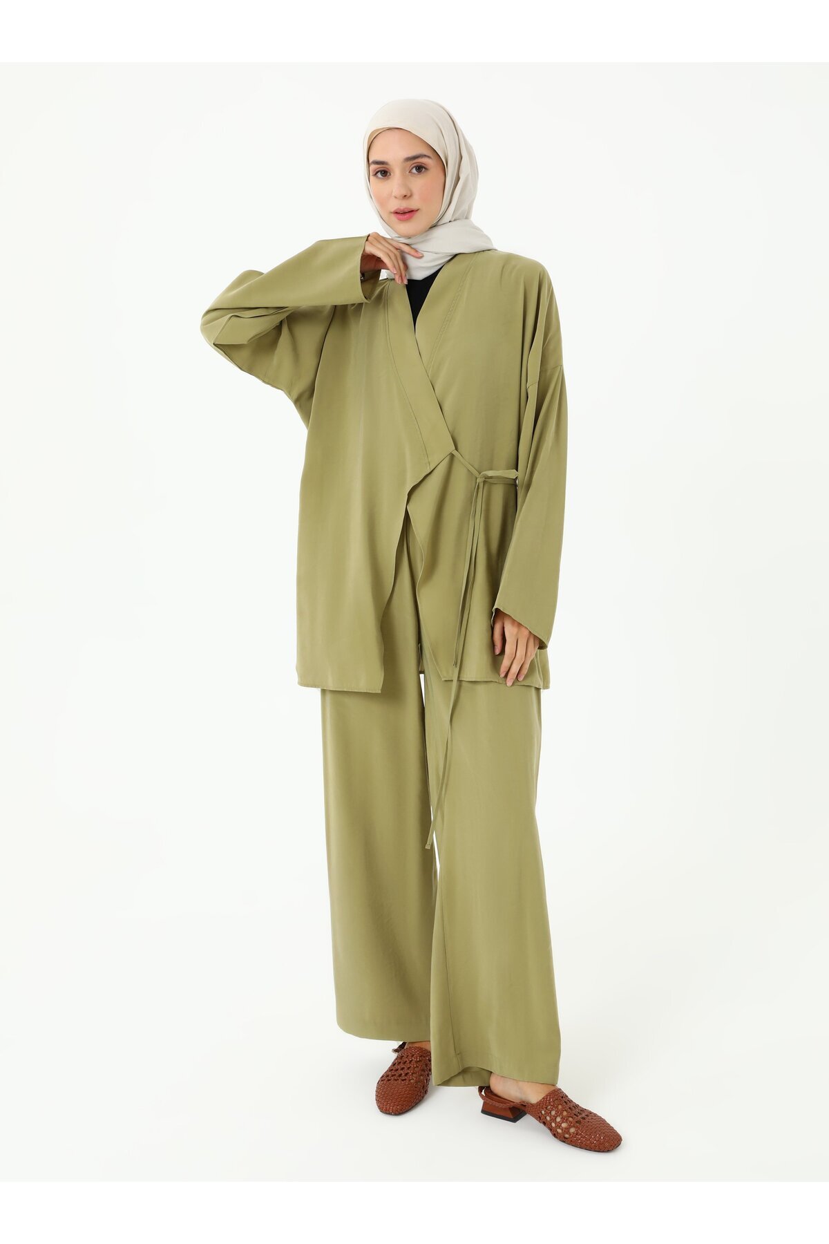 Modal Kumaşlı Yandan Bağlama Detaylı Kimono & Pantolon İkili Takım - Yesil - Modal Kumaşlı Yandan Bağlama Detaylı Kimono & Pantolon İkili Takım - Yesil - 9104781 XL