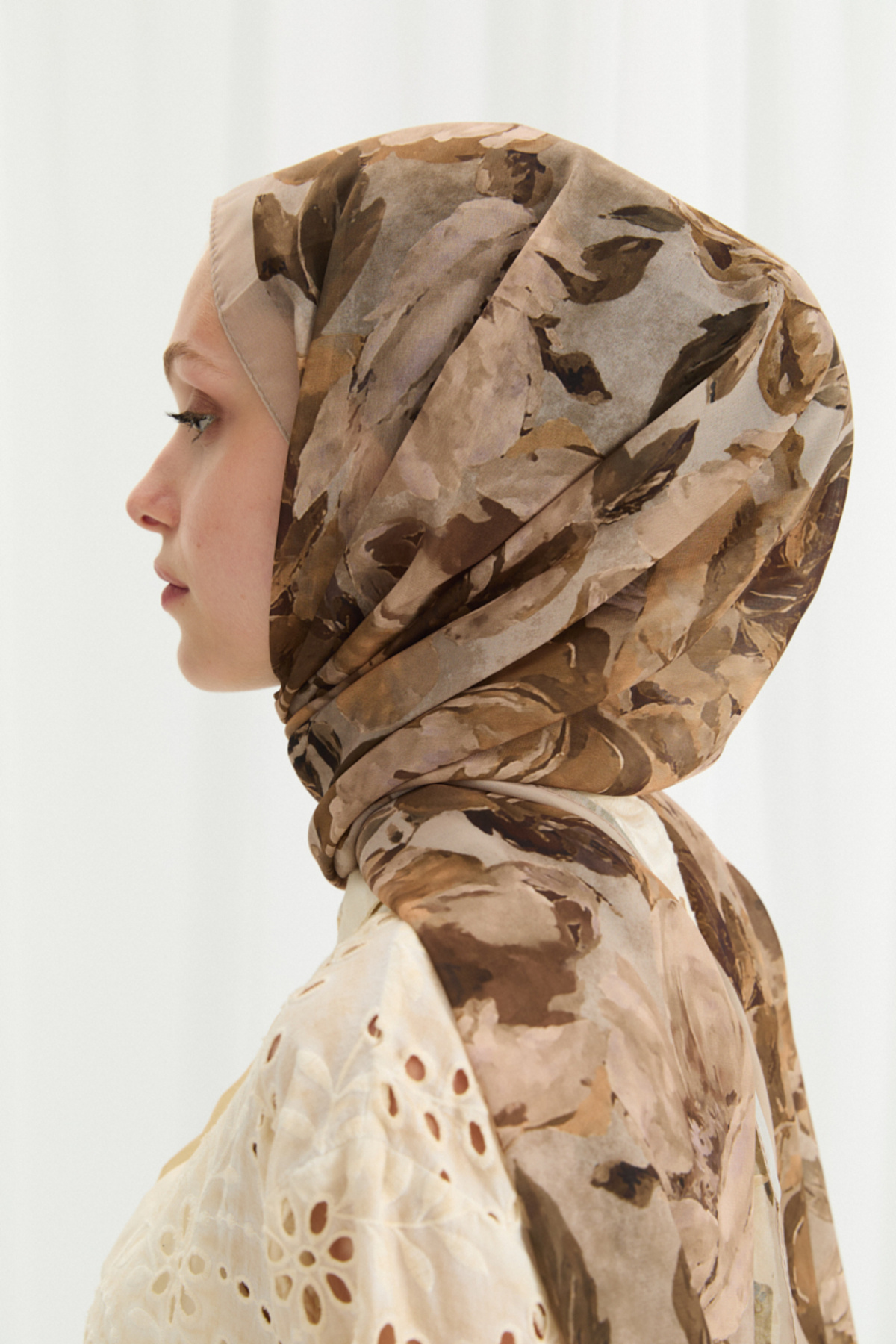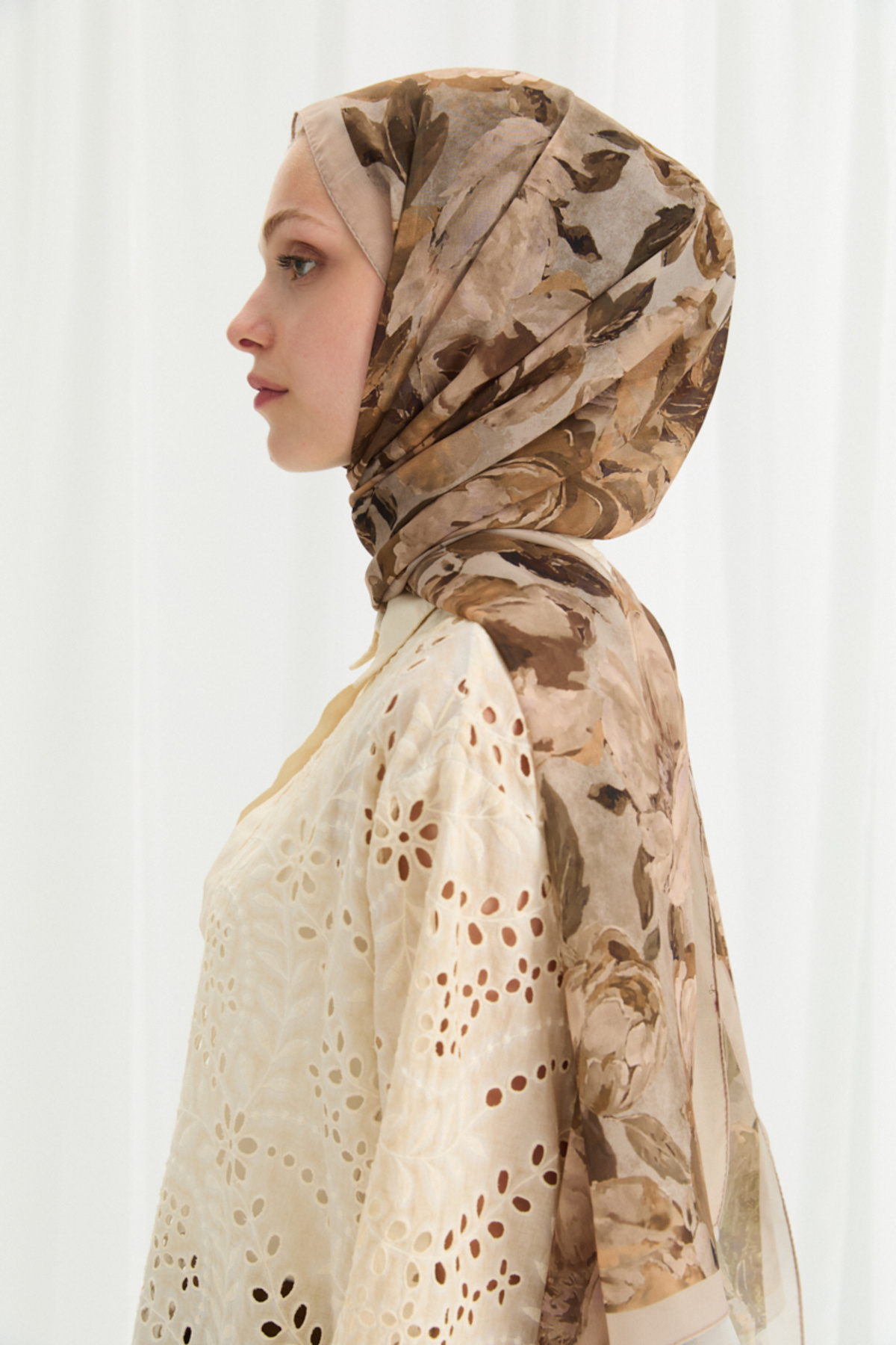 Aura İpek Krep Şal - Kahve Aura İpek Krep Şal - Kahve 1075 تک سایز