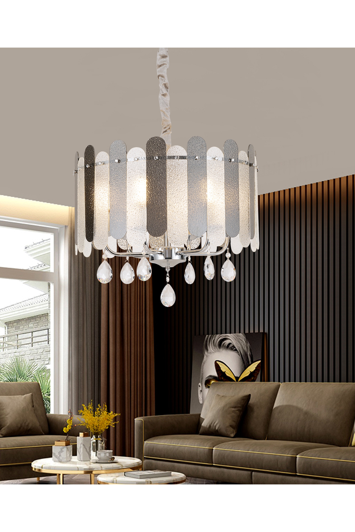 Madera 80'Lik Krom Füme Camlı Kristal Taşlı Avize Madera 80'Lik Krom Füme Camlı Kristal Taşlı Avize 4185-80-BL-CH تک سایز