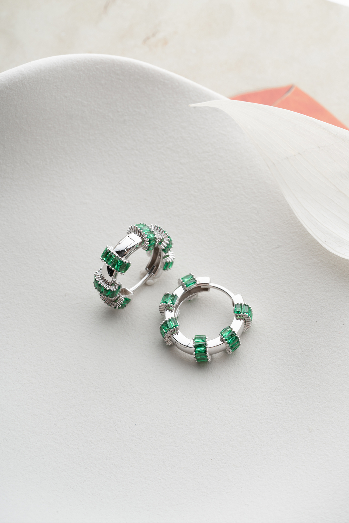 925 Ayar Gümüş Halka Baget Taşlı Küpe 925 Ayar Gümüş Halka Baget Taşlı Küpe SİLVANOJEWELRY324 تک سایز