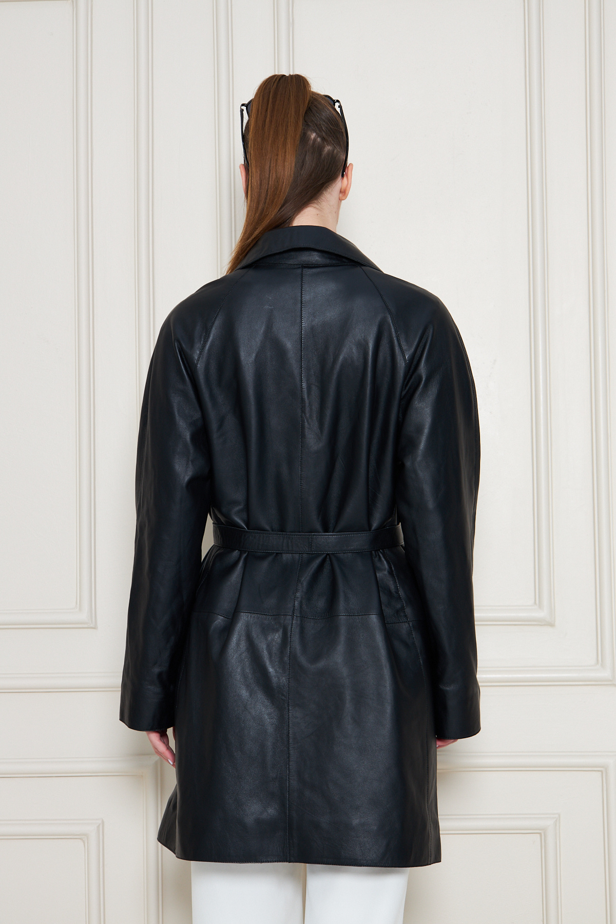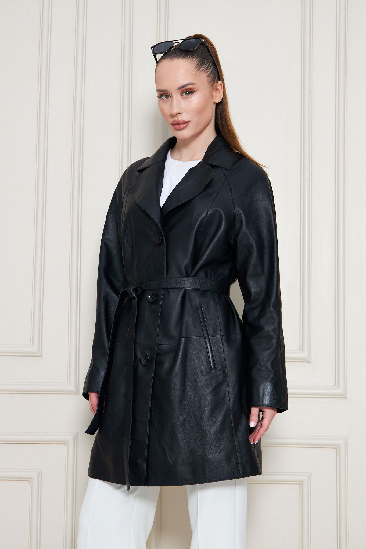 Kadın Hakiki Deri Trençkot – Siyah, V Yaka, Kuşaklı, Düğme Kapamalı, Oversize, 90 cm - 117122 Kadın Hakiki Deri Trençkot – Siyah, V Yaka, Kuşaklı, Düğme Kapamalı, Oversize, 90 cm - 117122 3XL