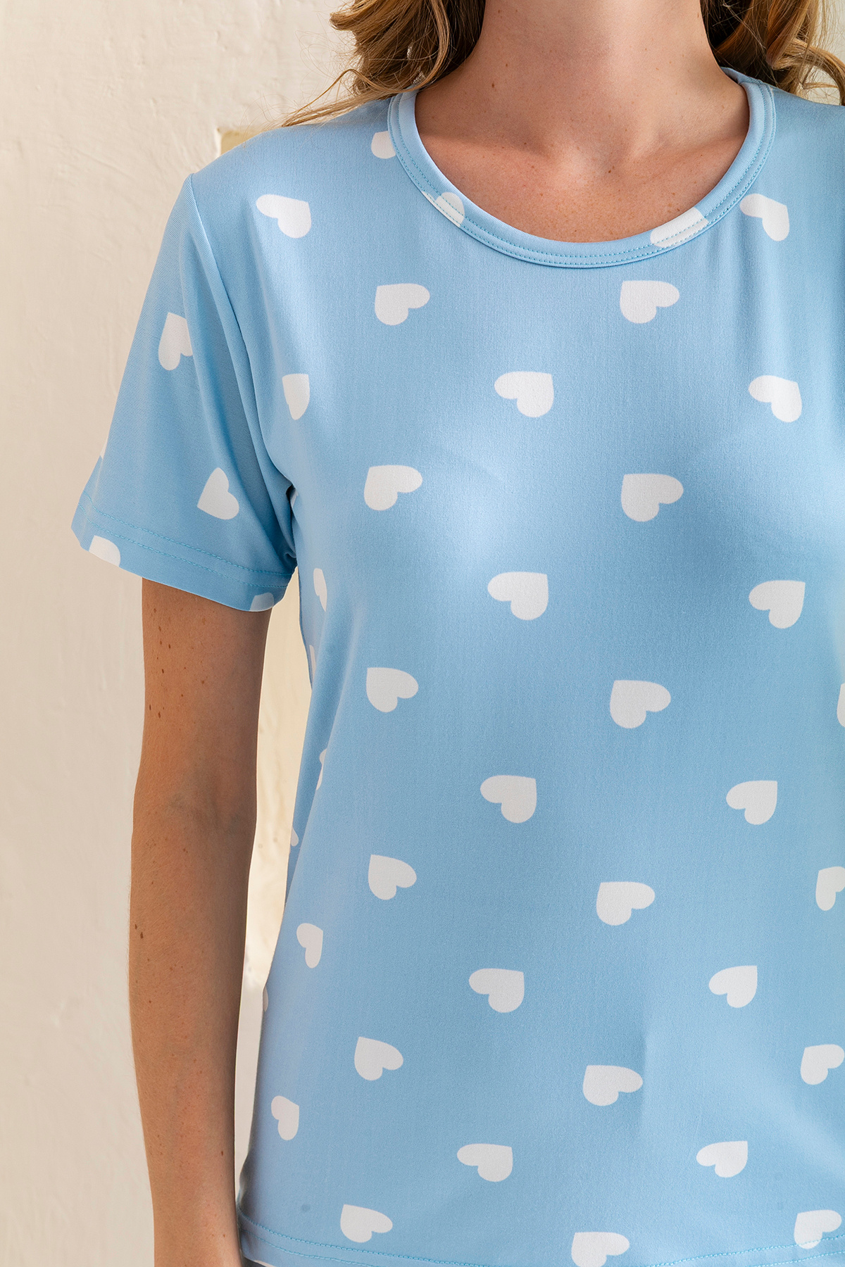 Kadın Bisiklet Yaka Kısa Kollu Kalp Desenli Pijama Takım Bebe Mavi - 6016 Kadın Bisiklet Yaka Kısa Kollu Kalp Desenli Pijama Takım Bebe Mavi - 6016 1700-6016 2XL
