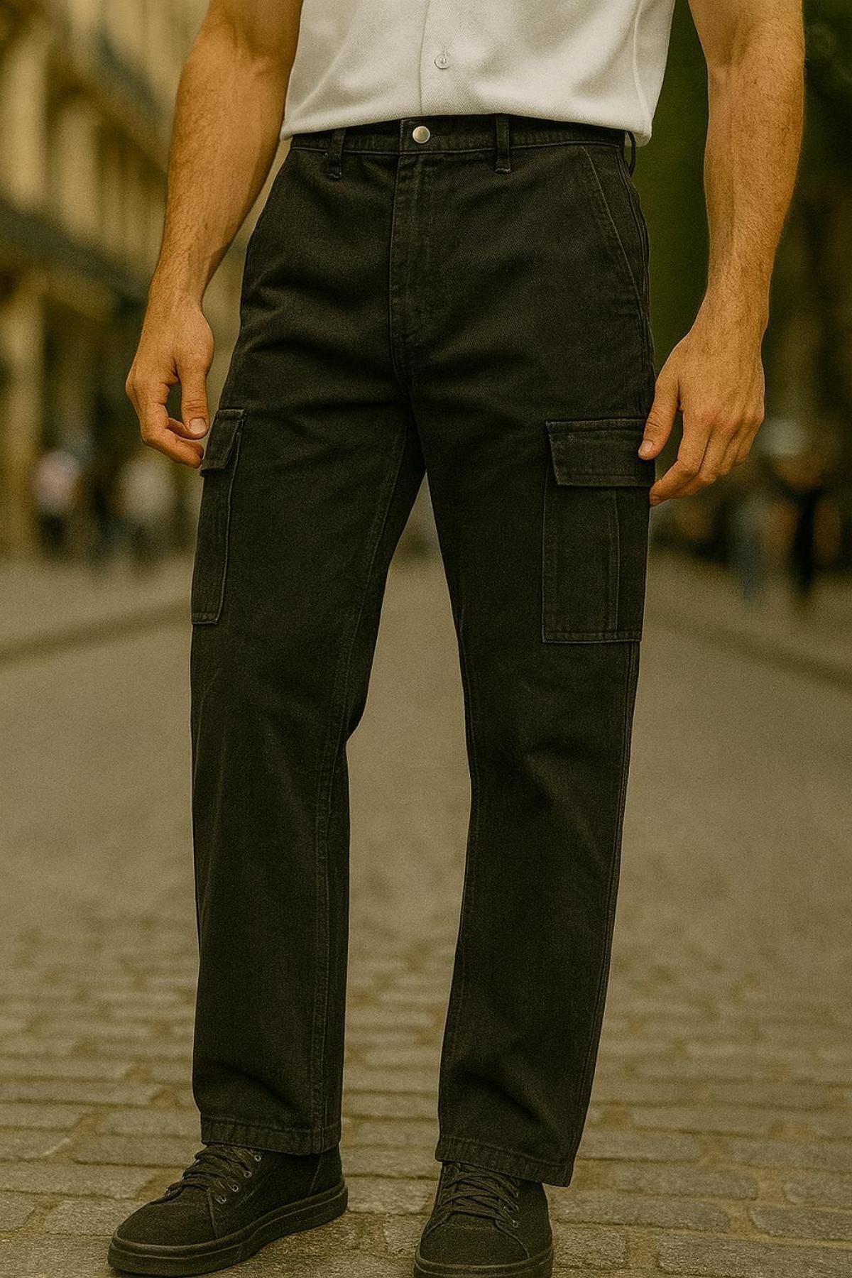 Erkek Bol Kargo Cepli Siyah Baggy Kot Pantolon Erkek Bol Kargo Cepli Siyah Baggy Kot Pantolon 1050DMJG 38