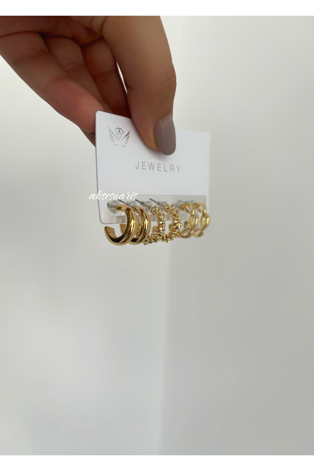 6'lı Desenli Halka Kadın Küpe Seti 6'lı Desenli Halka Kadın Küpe Seti 6lıhalkaküpeseti تک سایز