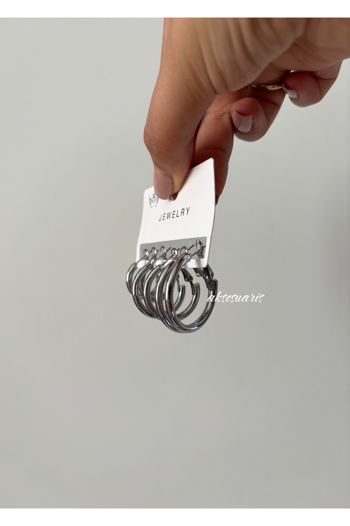 6'lı Desenli Halka Kadın Küpe Seti 6'lı Desenli Halka Kadın Küpe Seti 6lıhalkaküpeseti تک سایز