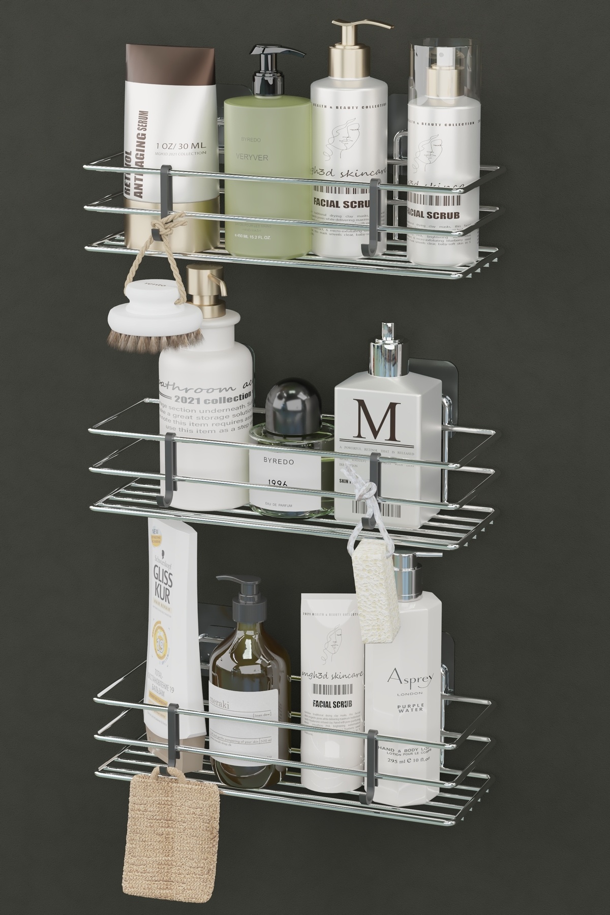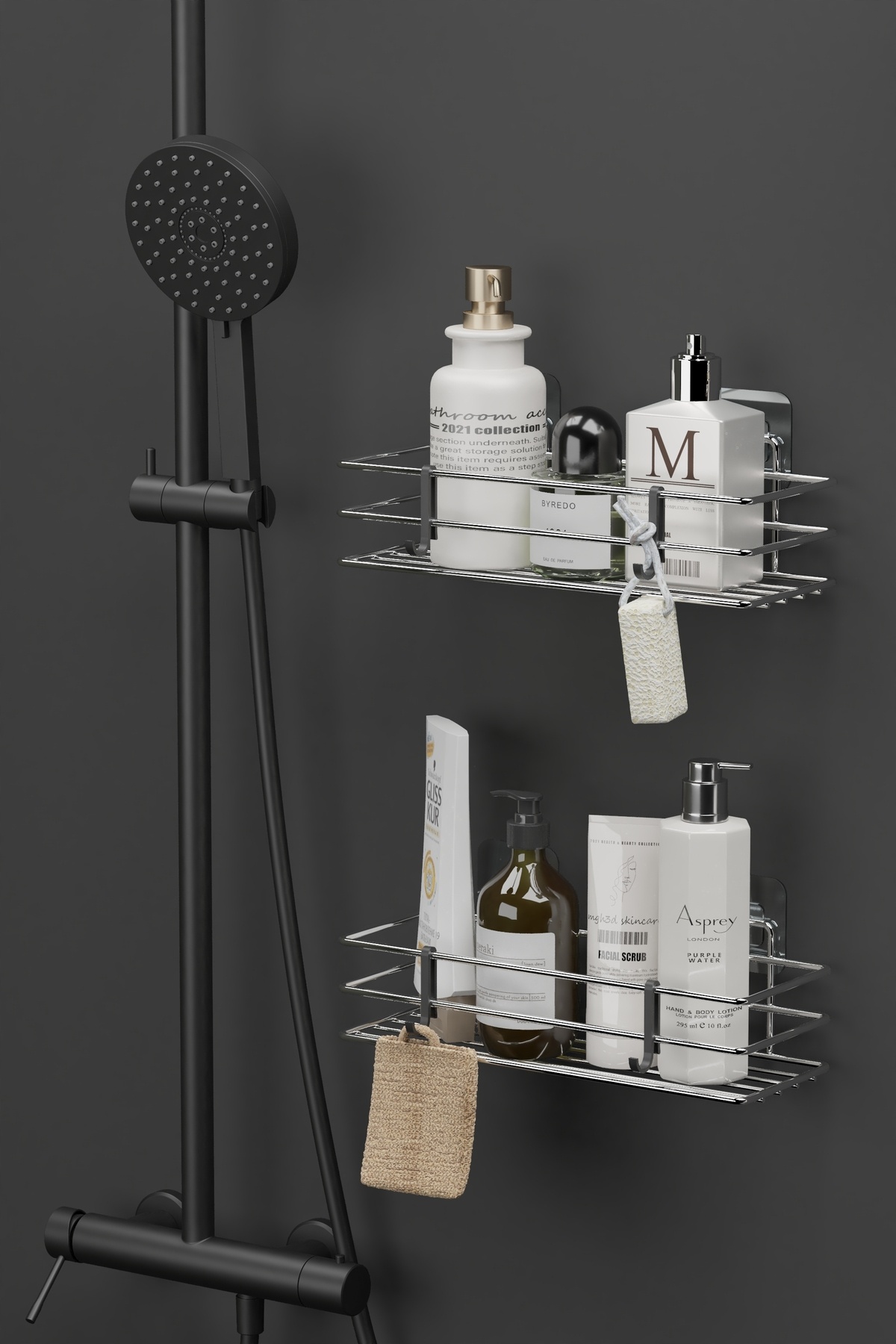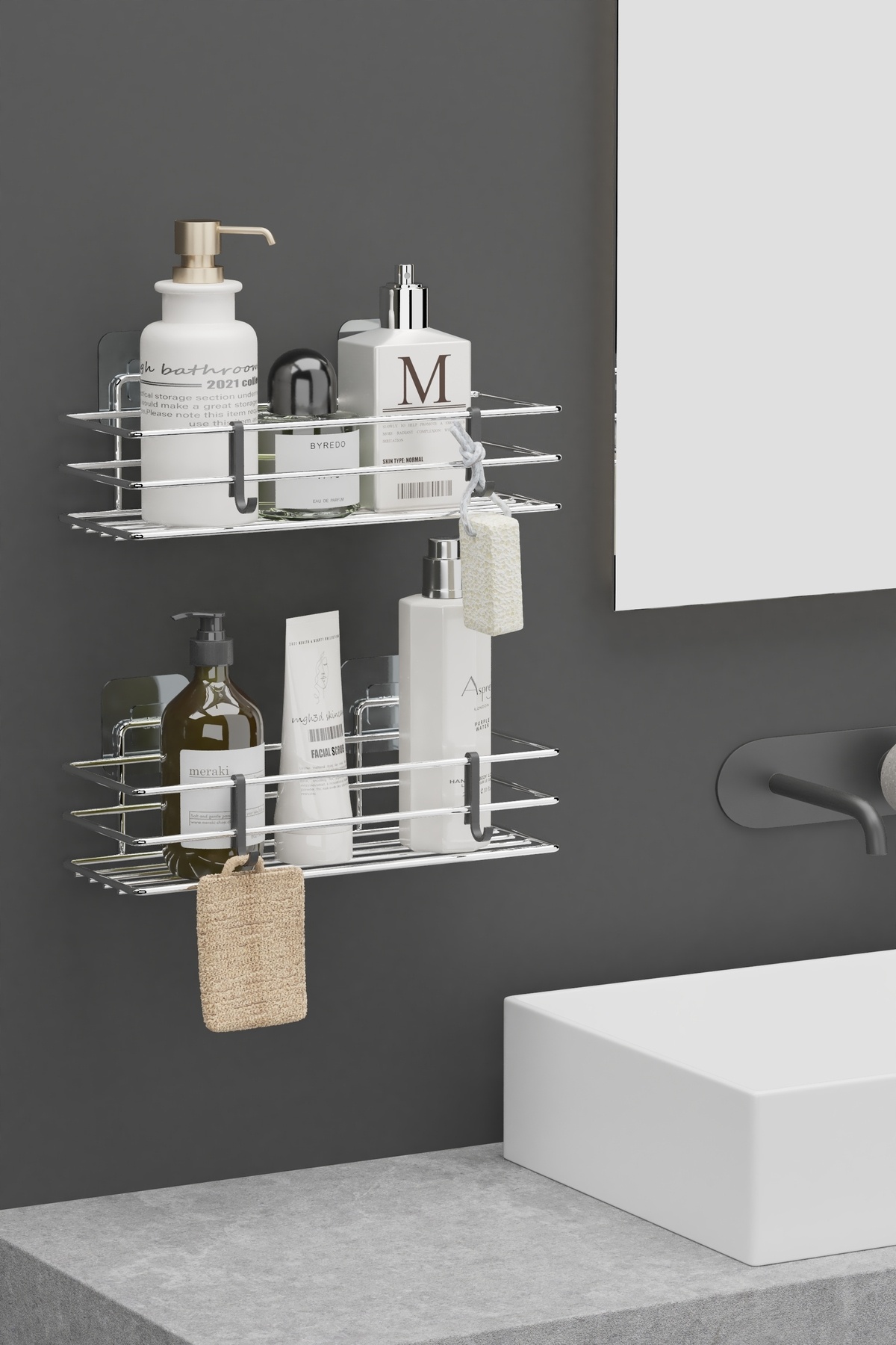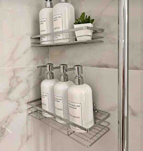 Yapışkanlı Krom Gümüş Banyo Rafı 2'li Set - Duş Rafı Set Şampuanlık ve Organizer Yapışkanlı Krom Gümüş Banyo Rafı 2'li Set - Duş Rafı Set Şampuanlık ve Organizer Metalik Renk تک سایز