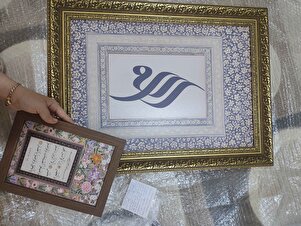Allah Kaligrafi - Altın Eskitme Çerçeve Allah Kaligrafi - Altın Eskitme Çerçeve 127tablo 50 x 70