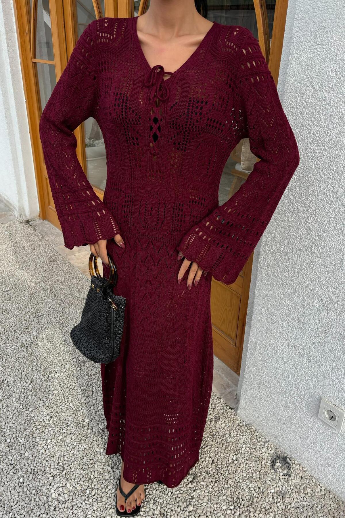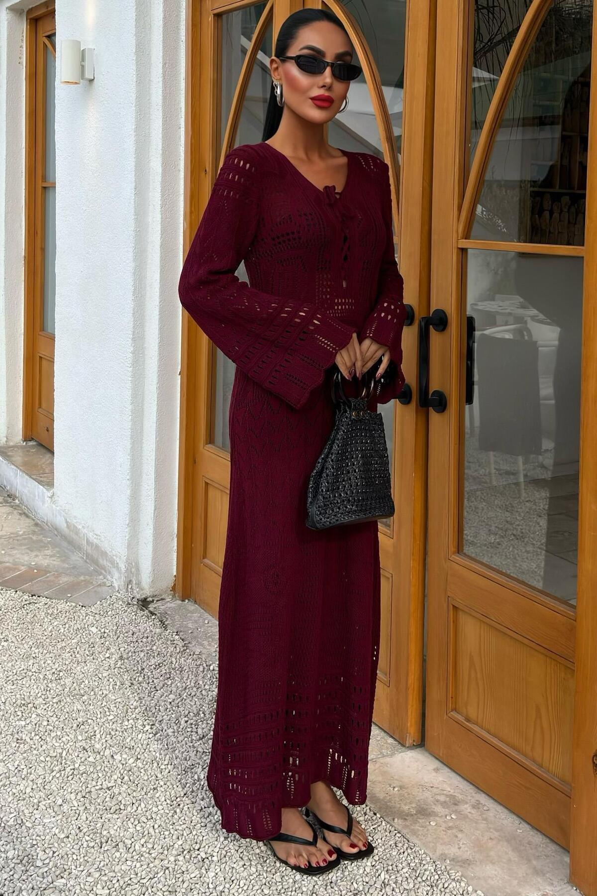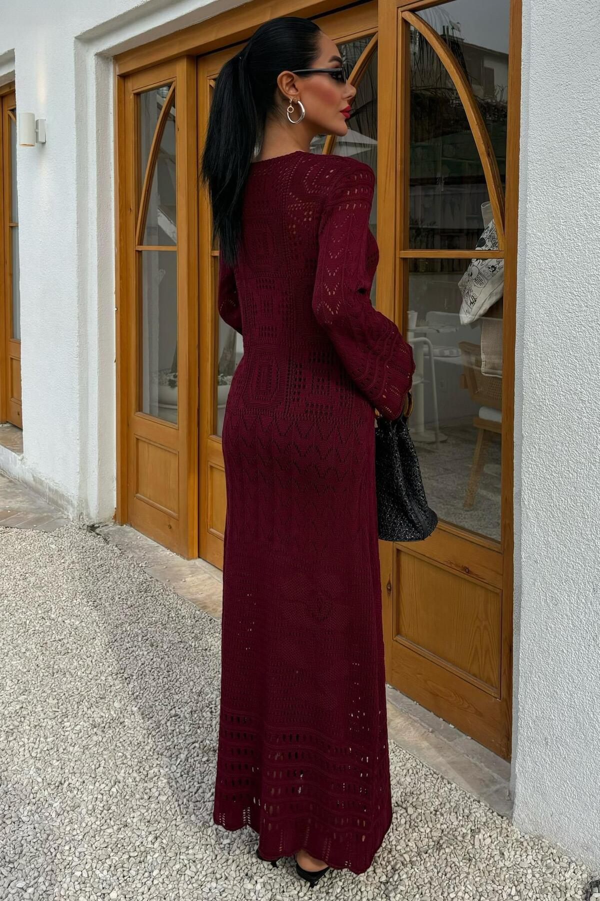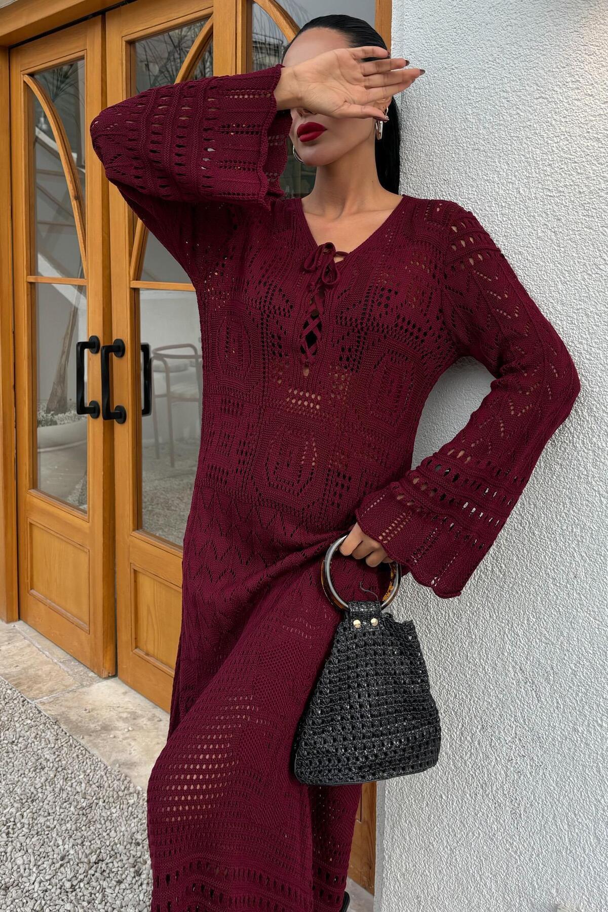 Kadın Bordo Uzun Örme V Yaka Elbise Kadın Bordo Uzun Örme V Yaka Elbise S5Y2838 Standart