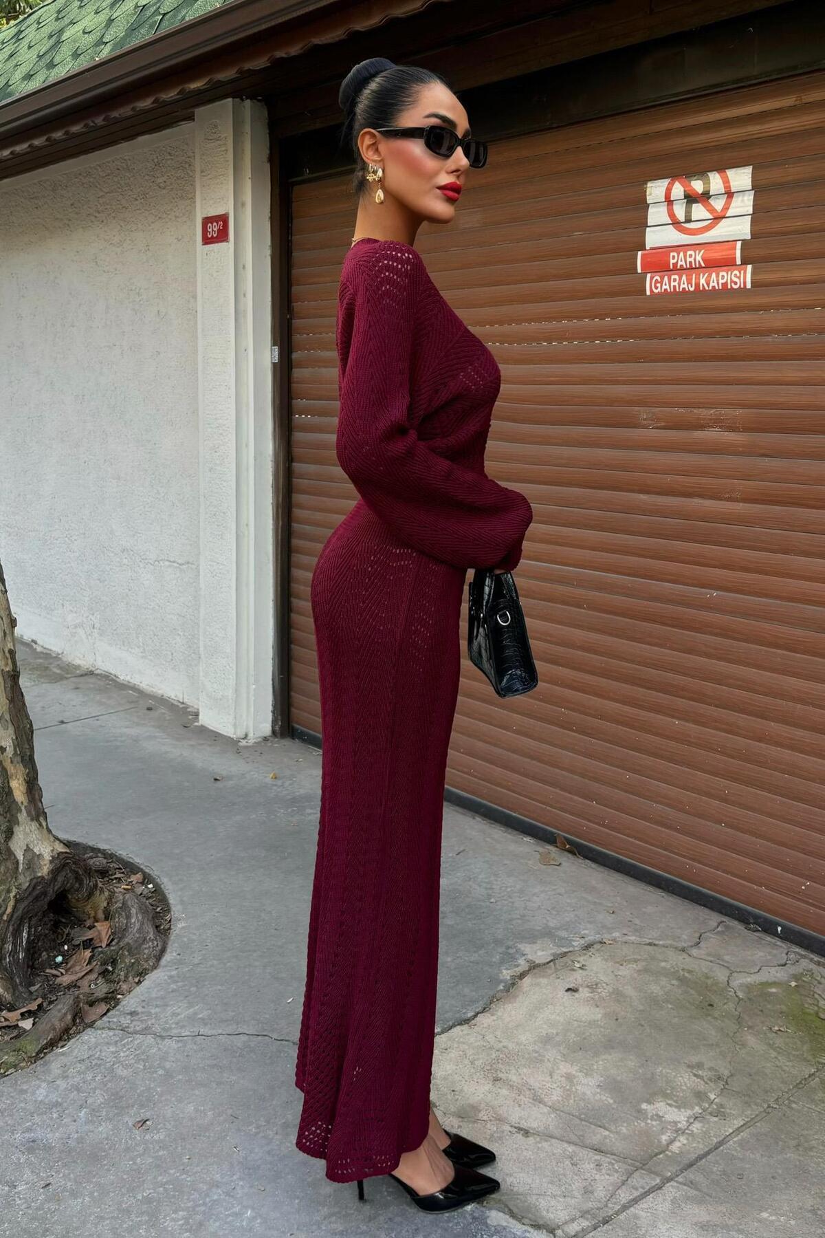 Kadın Bordo Çizgili Akrilik Uzun V Yaka Elbise Kadın Bordo Çizgili Akrilik Uzun V Yaka Elbise S4K2712 Standart