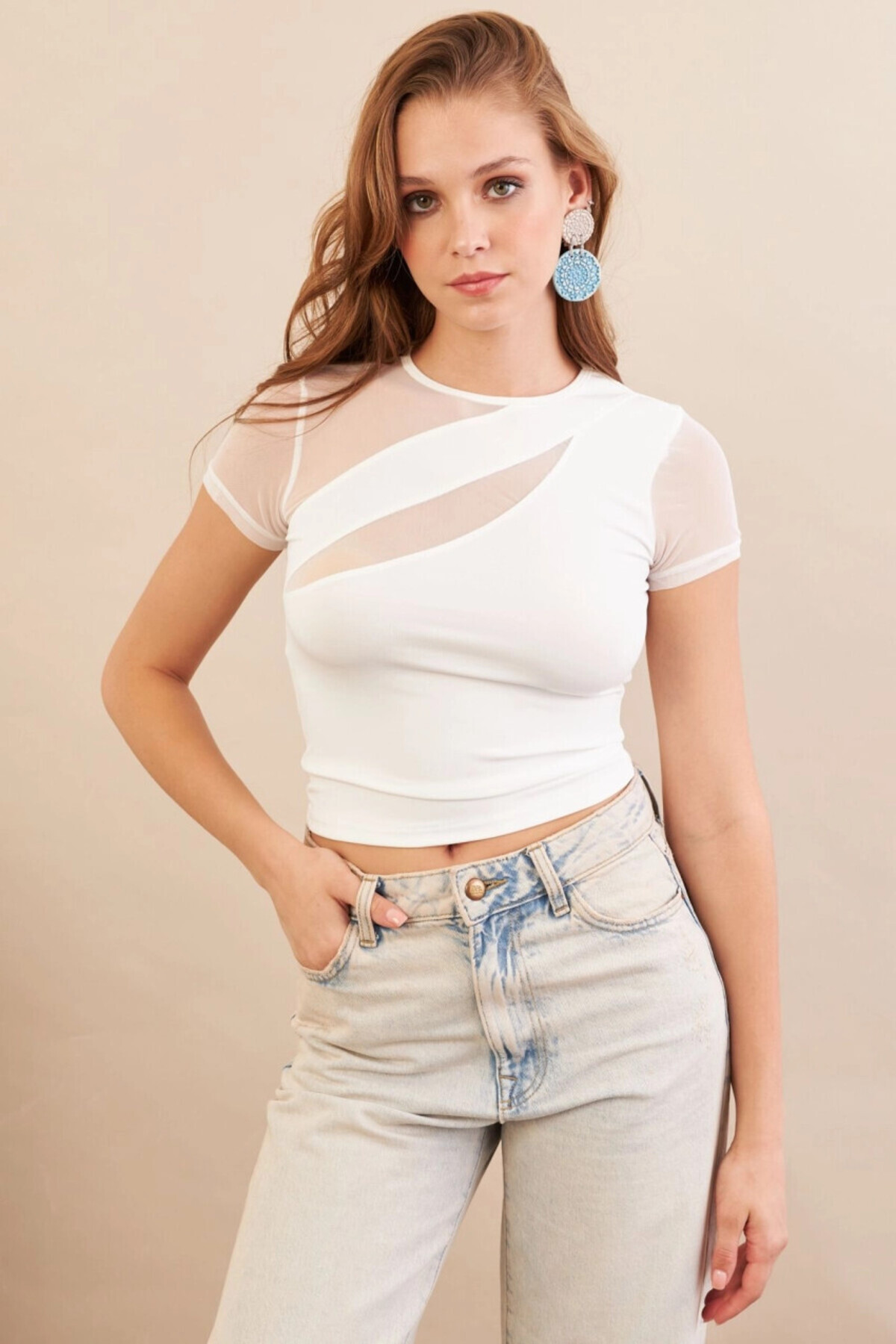 Kadın Beyaz Tül Detaylı Bluz AN8087 Kadın Beyaz Tül Detaylı Bluz AN8087 L