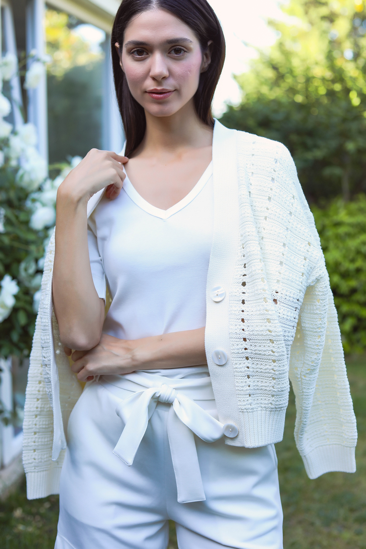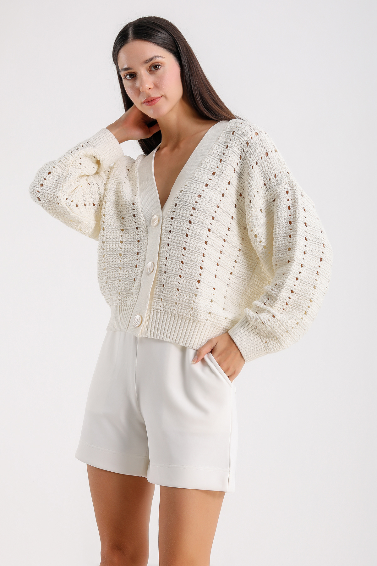 Ajurlu Düğmeli Kadın Hırka Ajurlu Düğmeli Kadın Hırka CLM114 L