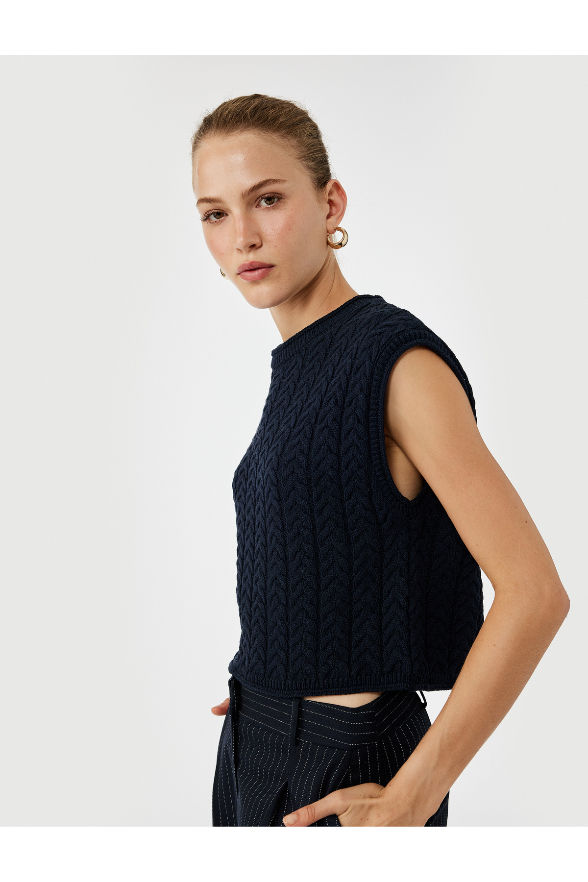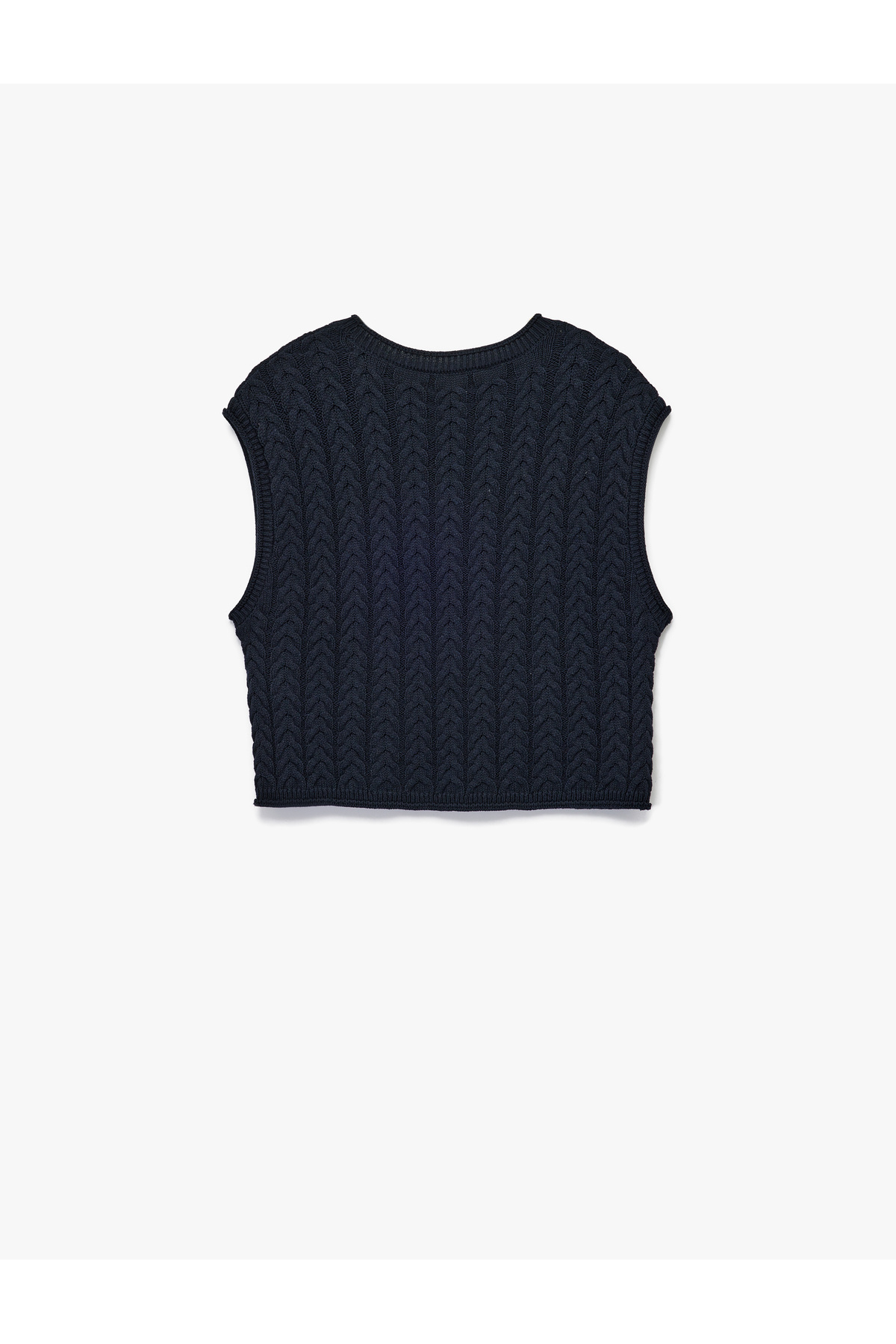 Kolsuz Bisiklet Yaka Saç Örgü Süveter Kolsuz Bisiklet Yaka Saç Örgü Süveter 6WAK20013HT XL