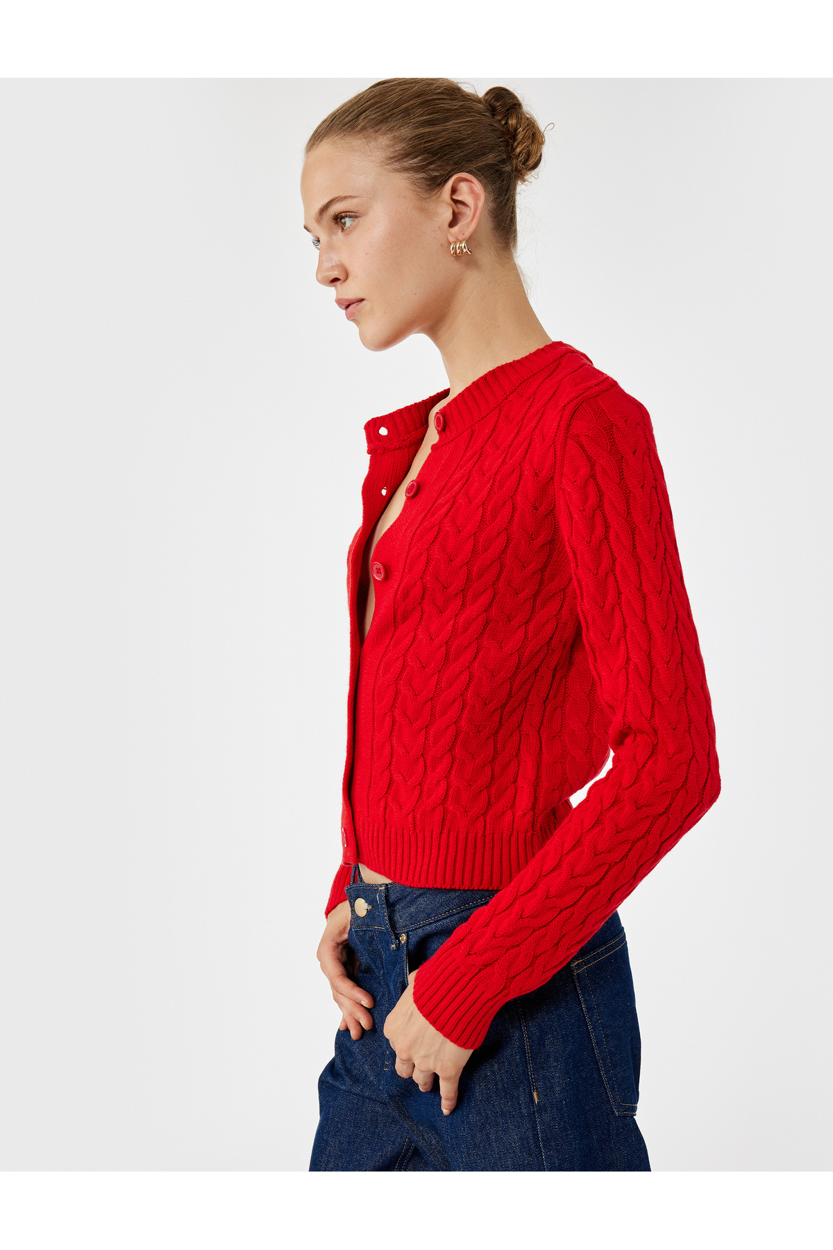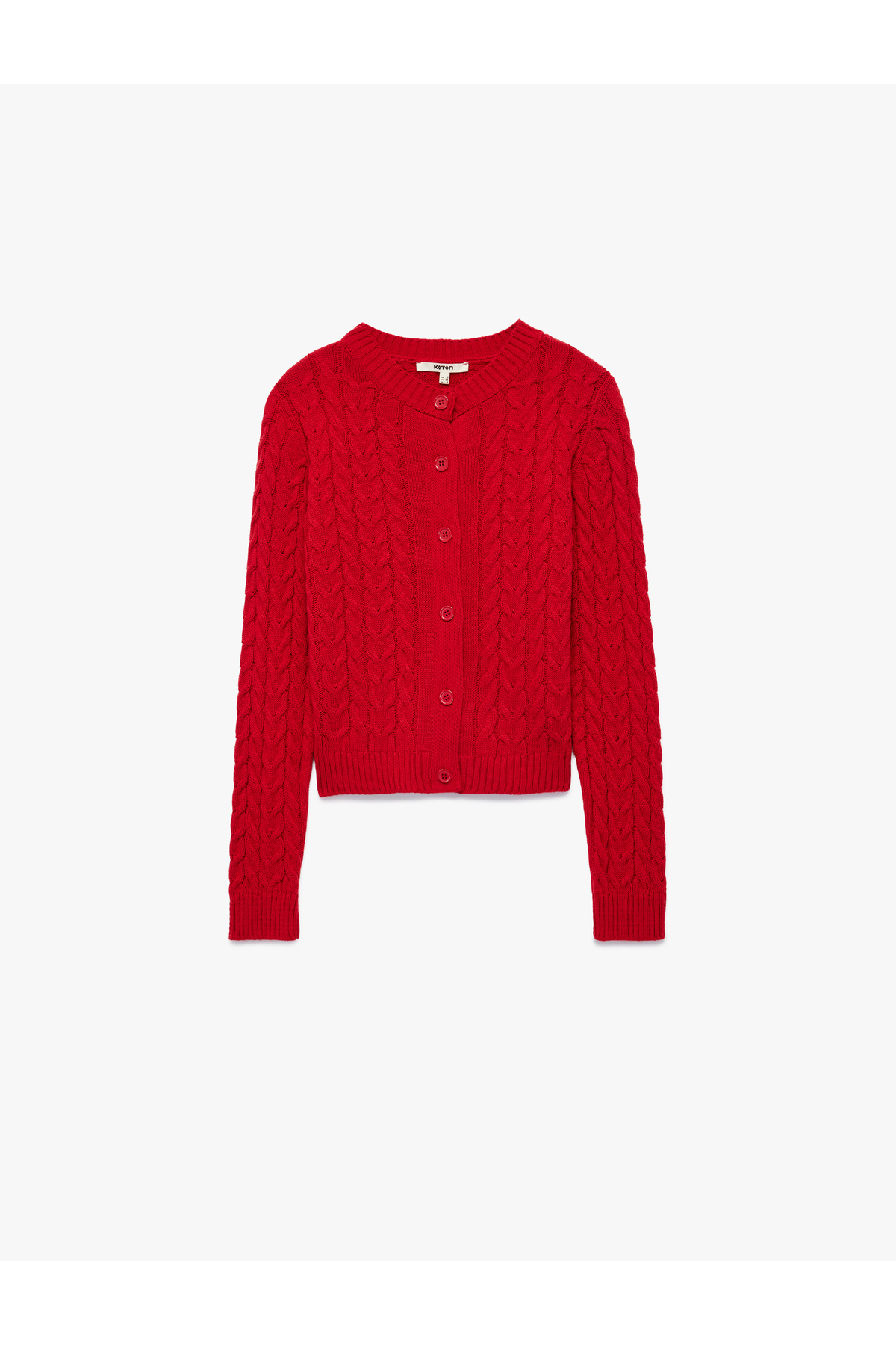 Uzun Kollu Bisiklet Yaka Düğmeli Saç Örgü Hırka Uzun Kollu Bisiklet Yaka Düğmeli Saç Örgü Hırka 6WAK90043HT XL