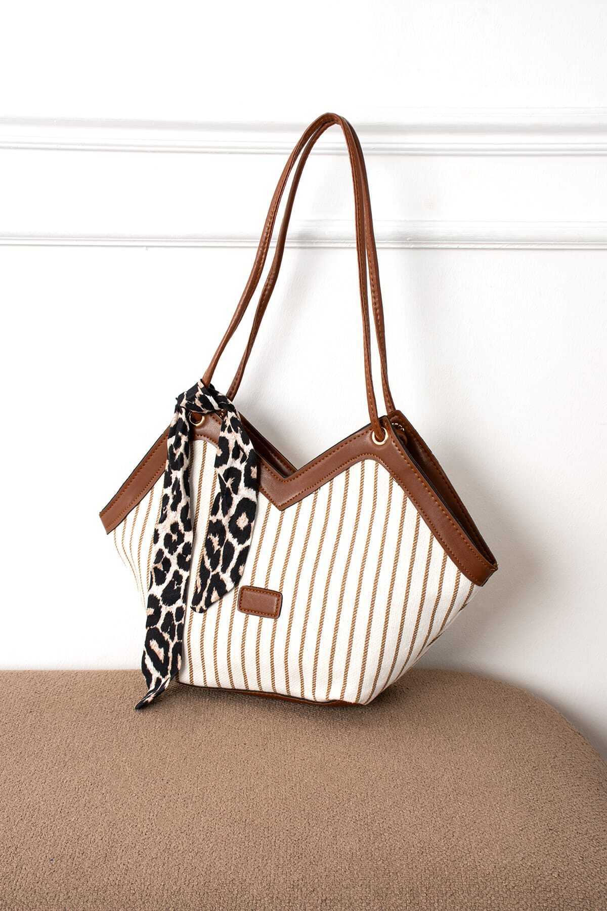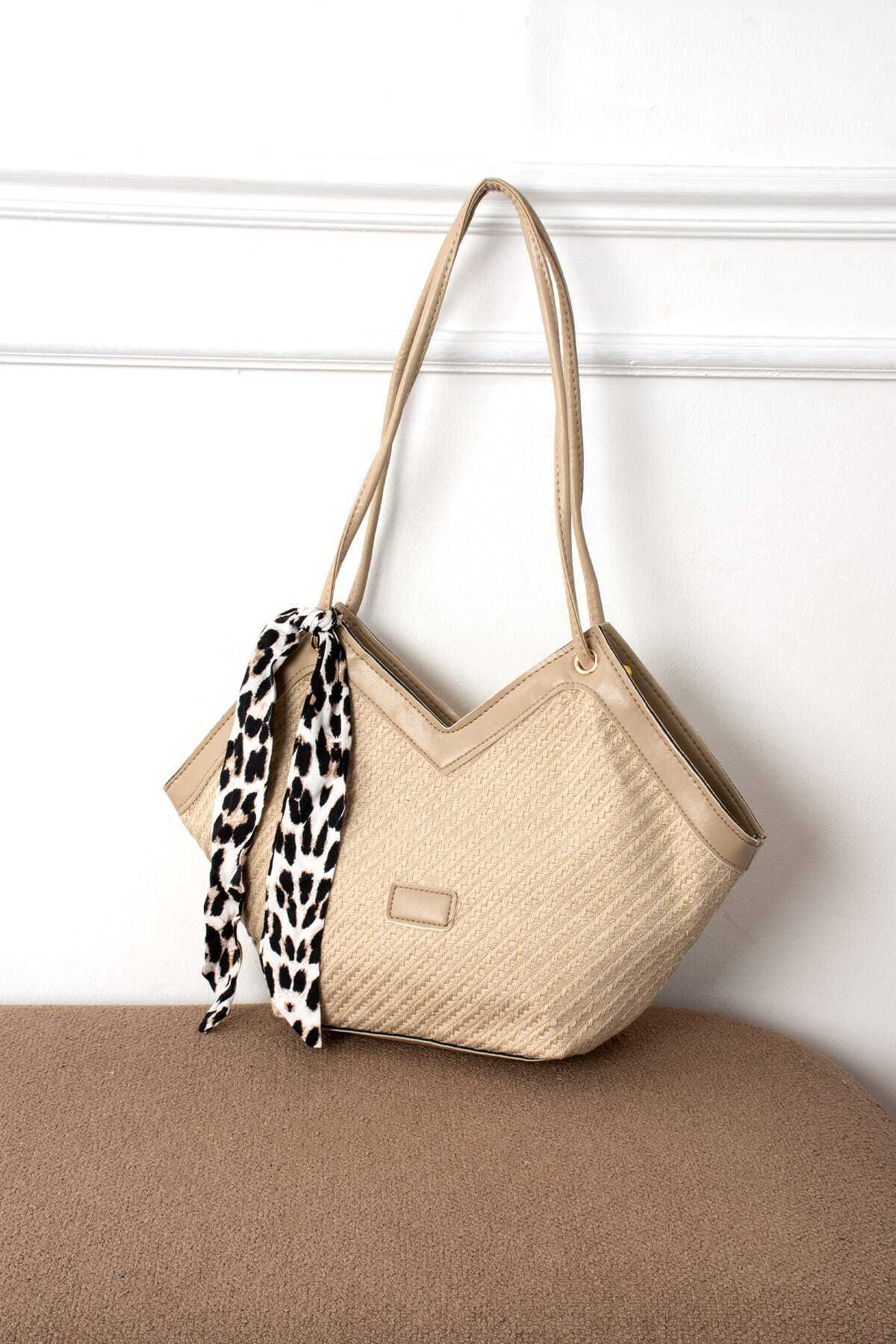 Kadın Hasır Fermuarlı Leopar Fular Detaylı Omuz Askılı Çanta Kadın Hasır Fermuarlı Leopar Fular Detaylı Omuz Askılı Çanta wmodel تک سایز